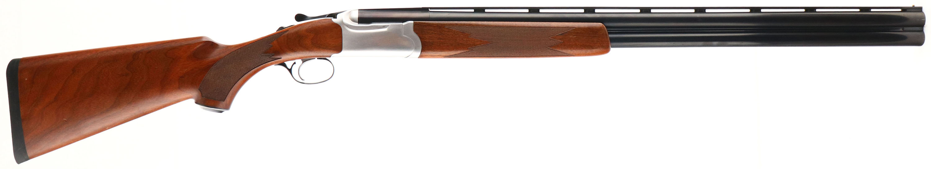 Ruger, Red Label, CAL: 12GA, MFG: 2002, SN: 411-57269, Break Action O/U, Choke: IC+/IC+. 3'' Chamber, 28'' barrels, with ventilated rib. The original checkered & capped pistol grip stocks are excellent, with sharp checkering. There are minor handling marks to the finish. The original metal blue finish rates 97%. The chamber end of the top barrel is beginning to tone plum. The coin silver receiver is excellent, with visible brush lines. Bores are excellent. The ventilated rib holds a single front bead. Stock carries a factory Ruger solid black rubber recoil pad. A nice condition Red Label. FFL Req. - Value: 1000 to 1600