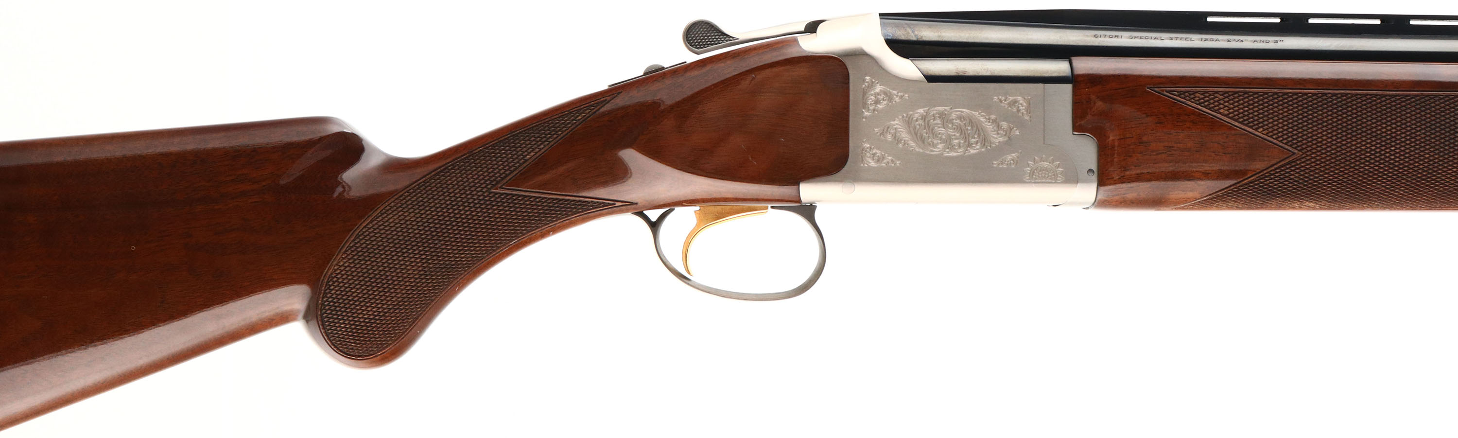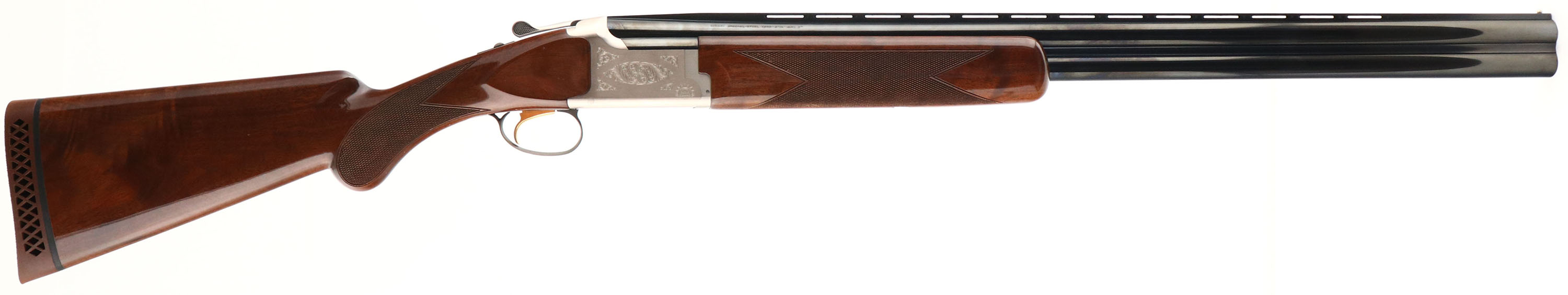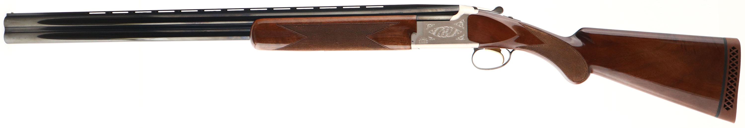 Browning, Citori 725 Featherweight Super Light - Grade I (Miroku), CAL: 12GA, MFG: 2006, SN: 15735MT131, Break Action O/U, 28'' barrel. The checkered round knob wood stocks are excellent. The high gloss finish is excellent, near mint. The metal blue finish rates 99% on the barrels & the coin silver receiver is excellent. Both sides of the receiver display simple ornamental scroll engraving & the bottom of the receiver has a gold falling feather. The bottom of the trigger guard has a gold Browning logo. Bores are excellent. The ventilated rib holds a single silver front bead. Stock has a Browning, ventilated brown rubber recoil pad. LOP: 14 1/4'' overpad. Comes with owners manual & partial accessory kit. A nearly new condition Citori shotgun. FFL Req. - Value: 2000 to 2500