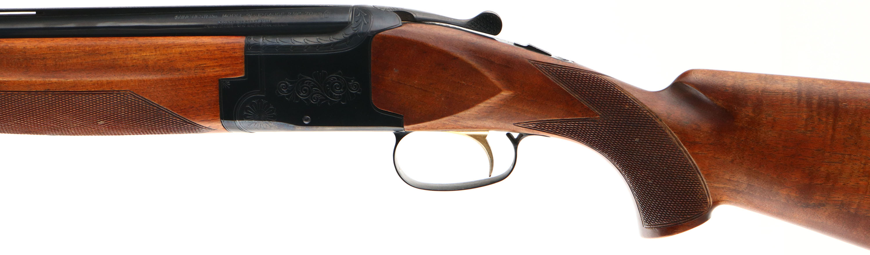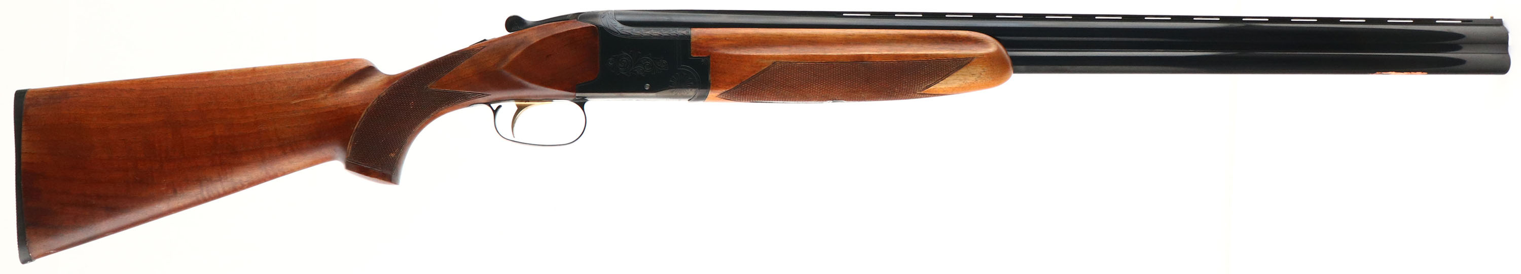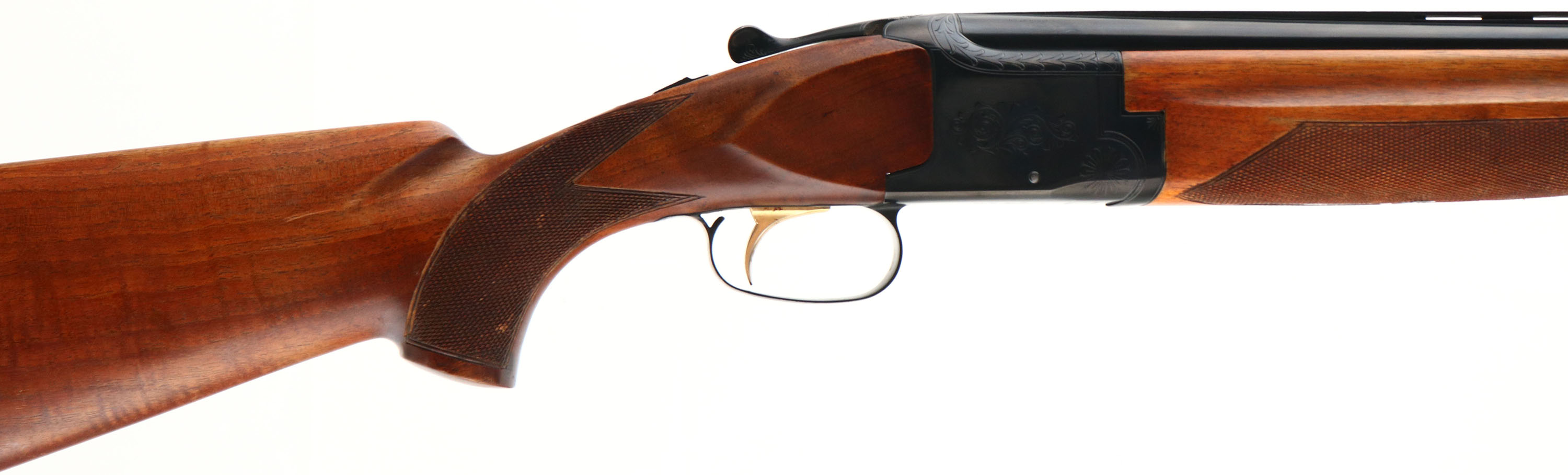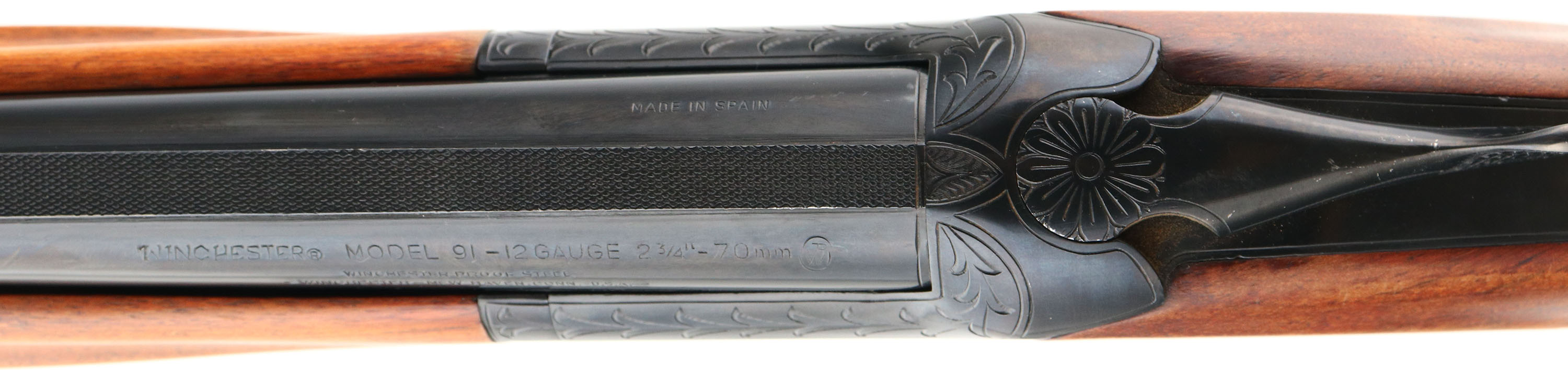 Winchester, Model 91, CAL: 12GA, MFG: 1970's, SN: WS1632, Break Action O/U, Choke: F/F+, 28'' barrels with ventilated rib. The checkered flat pistol grip stocks are excellent. There are a few minor scrapes & areas of thinning/dullness. The metal blue finish rates 95% on the barrel, with one area on the bottom barrel worn to a copper tone. Bores are excellent, with visible striations. Single front bead on the ventilated rib. Winchester checkered plastic buttplate. This model was made in Spain by Larona. FFL Req. - Value: 500 to 1000