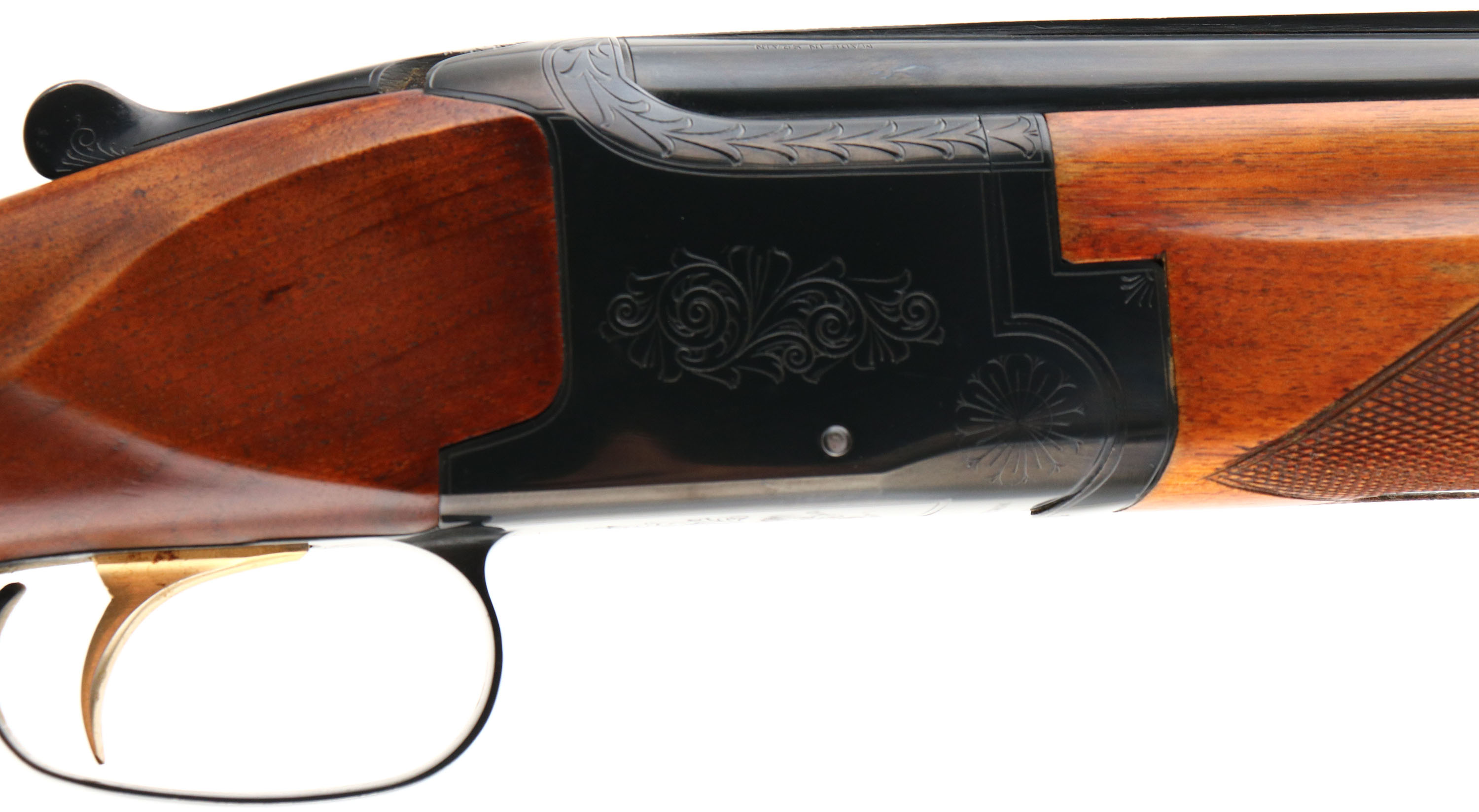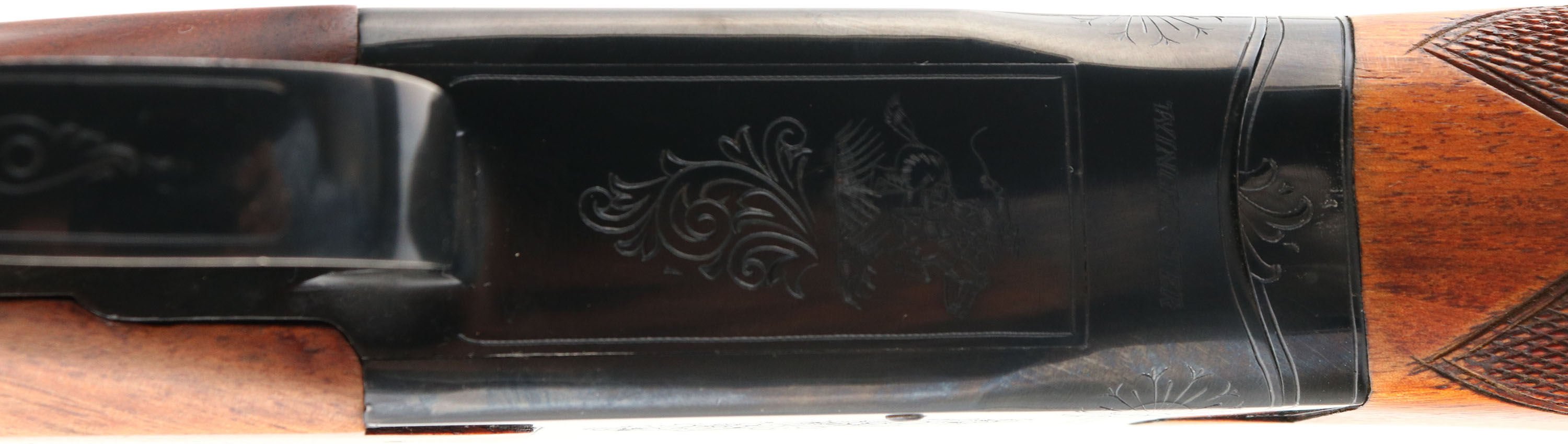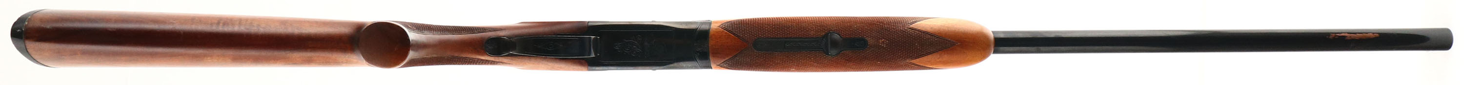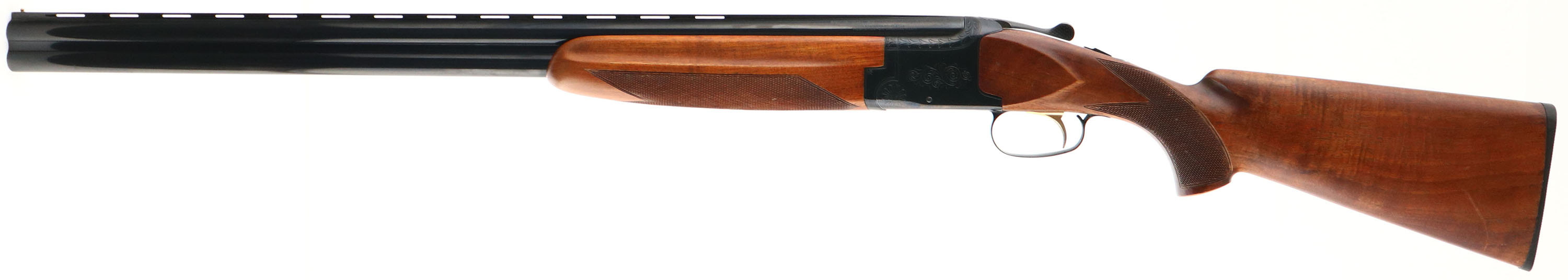 Winchester, Model 91, CAL: 12GA, MFG: 1970's, SN: WS1632, Break Action O/U, Choke: F/F+, 28'' barrels with ventilated rib. The checkered flat pistol grip stocks are excellent. There are a few minor scrapes & areas of thinning/dullness. The metal blue finish rates 95% on the barrel, with one area on the bottom barrel worn to a copper tone. Bores are excellent, with visible striations. Single front bead on the ventilated rib. Winchester checkered plastic buttplate. This model was made in Spain by Larona. FFL Req. - Value: 500 to 1000