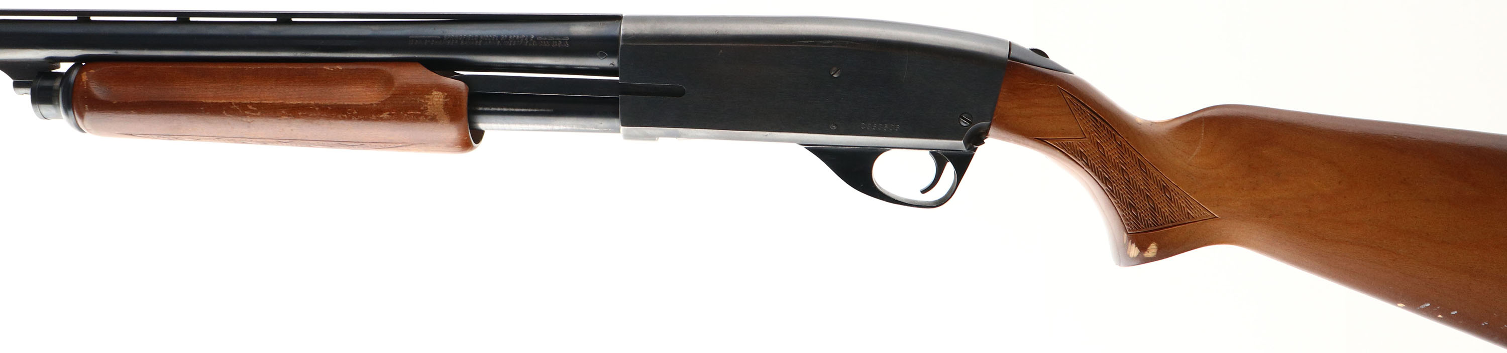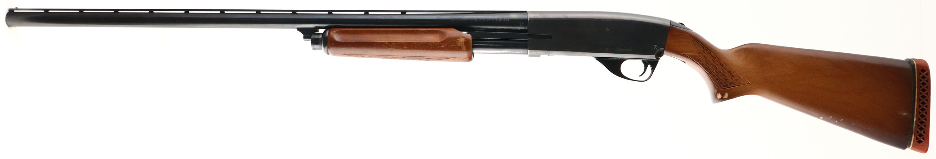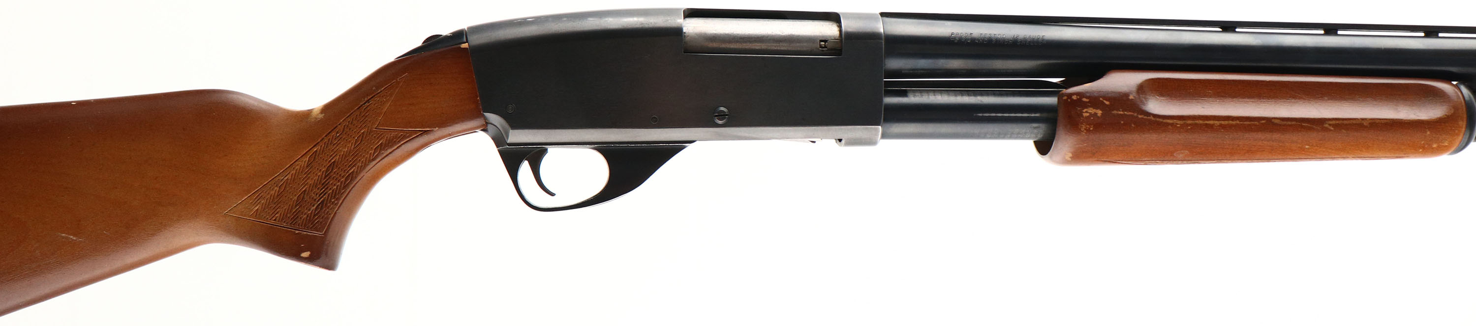 Springfield (Savage), Model 67 Series E , CAL: 12 GA, MFG: 1967-89, SN: C363536, Pump Action Shotgun, 2 3/4 & 3'', Choke: Full, 30'' Ventilated barrel. The original checkered & flat pistol grip wood stocks are excellent, but with several small scrapes & minor dings to the very good original finish. The original metal finish rates 90% overall. Bore is excellent. The barrel rib holds a single front bead. Buttstock carries a Pachmayr ventilated recoil pad, which is a bit ill fitting. LOP: 14 3/4'' over pad. FFL Req. - Value: 200 to 400