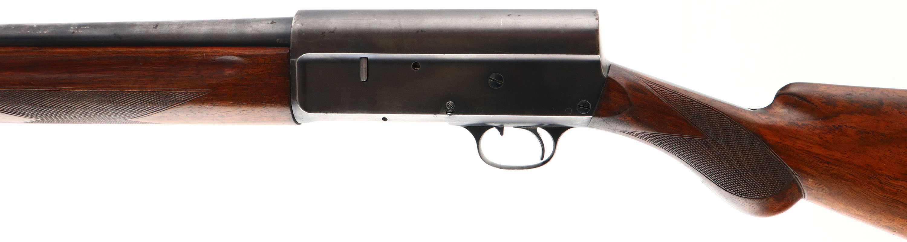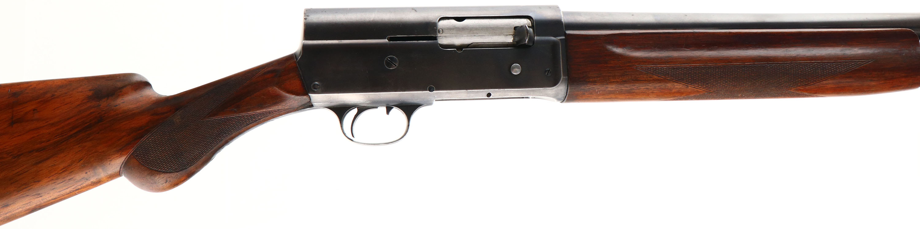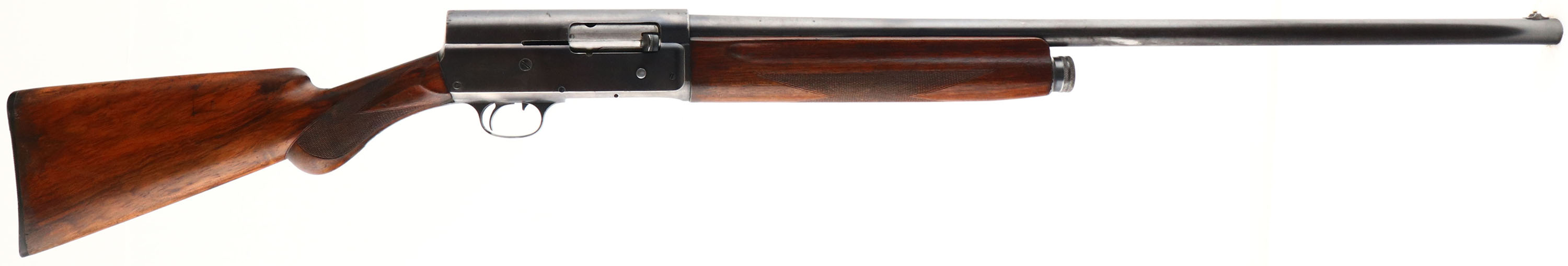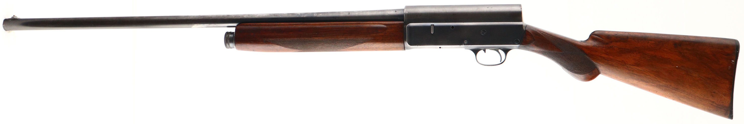 Remington, PRE Model 11, CAL: 12 GA, MFG: 1905-20, SN: 48503, Semi-Auto Shotgun, Choke: Full, 28'' No-rib barrel. The orignal checkered & round pistol grip wood stocks are very good & solid. They display minor finish level scrapes, scuffs & contusions to the finish, which is some added oils over the original finish & shows some thinning & staining particularly near the buttend. There is a small chip to the right side bottom corner at wrist. The metal blue finish has good coverage, but the depth of the blue is graying as it thins & rates 60% on barrel, 70% on receiver. Bore is very good. The barrel is fitted with a silver bead. Buttstock carries a Remington, black plastic buttplate. LOP: 14''. FFL or C&R Req - Value: 300 to 600