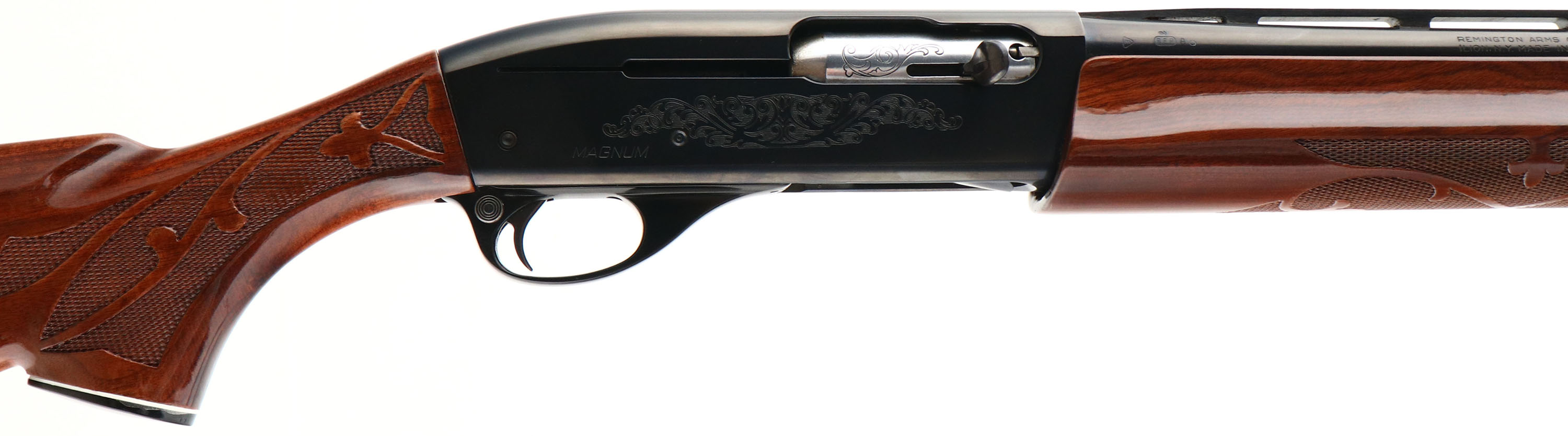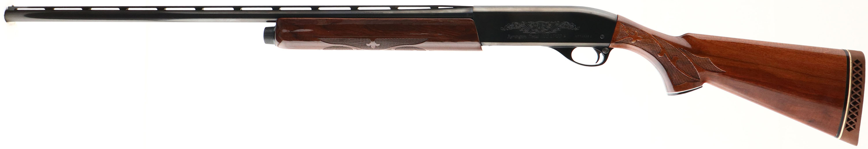Remington, Model 1100 LT-20 MAG, CAL: 20 GA, MFG: 1982, SN: N776639U, Semi Auto Shotgun, Choke: Full, 3'', 28'' Ventilated rib barrel. The original checkered & capped pistol grip wood stocks are excellent, displaying light handling marks to the original finish. The metal blue finish rates 99% overall, with a couple minor blemishes. Bore is excellent & bright. The rib holds a single front bead. Buttstock carries a Remington ventilated recoil pad. A high condition & light weight shotgun in a popular gauge for upland birds. FFL Req. - Value: 600 to 1200