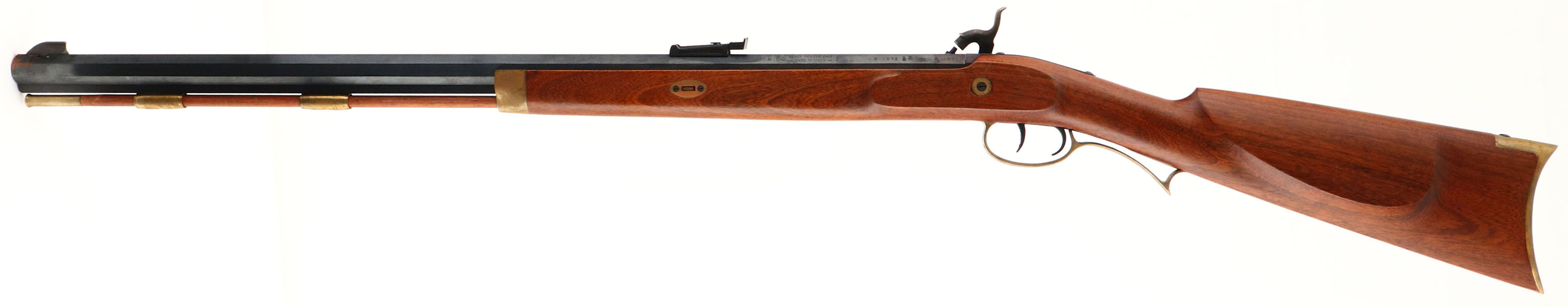 Italian, Muzzleloader, CAL: 50, MFG: N/A, SN: 010076, Percussion Muzzleloader, 28 7/8'' barrel. The straight grip & cheeked wood stock is excellent. The metal blue finish on the barrel rates 95%. The upper tang & ignition system are toned plum. The case-hardened side plate retains excellent case-colors. The brass hardware is good, with consistent spotting toned to a light brown patina. Bore is excellent. Factory iron sights. Stock has a crescent brass buttplate. Double triggers. Comes with cardboard box. Black powder, No FFL Req. - Value: 250 to 450