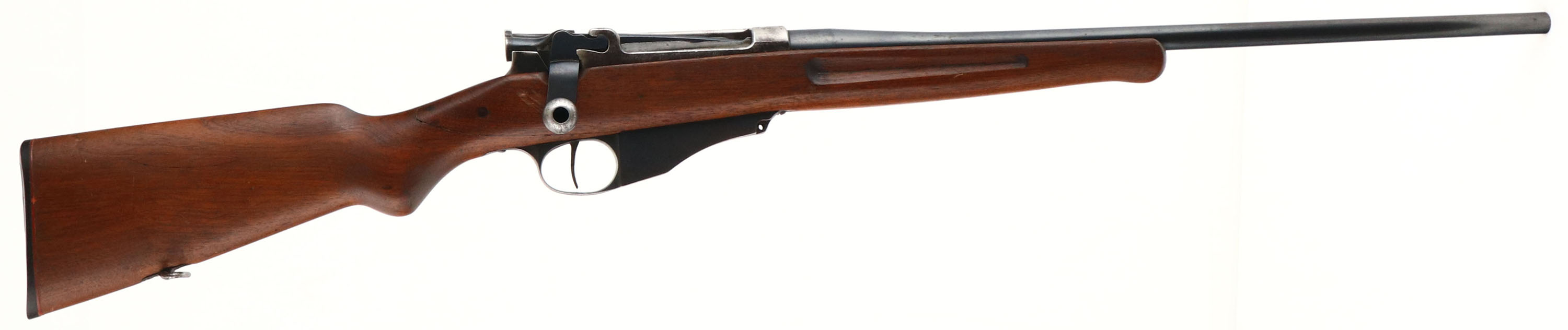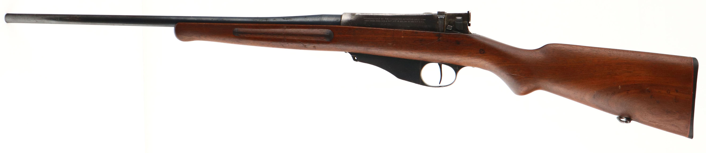 Winchester, Model: M1895 Lee-Navy Sporting Rifle, Cal: 6mm Lee-Navy, MFG: 1897, S/N: 8607, Straight Pull bolt action rifle, 20 1/2'' barrel. The bolt on this rifle does close all the way but pops out of the locked position when pressure is taken off the bolt handle, needs to be taken to a gunsmith & looked at. Because of that this rifle is being sold AS IS with NO RETURNS ACCEPTED. The cut down, semi-pistol grip walnut stock is good with various nicks, dings, dents, scratches, & wear from use/age. There is a crack on the top of the wrist goes back 2'' then wraps around to the rear of the magazine, this crack has a wooden dowel repair through the wrist for added stability. The metal finish on the barrel rates 75% overall with areas of wear, gun metal gray, & brown patina. The metal on the receiver has mostly worn to a gun metal gray with areas of thinned bluing. The left side of the receiver is marked ''MANUFACTURED BY THE WINCHESTER REPEATING ARMS CO.'', ''NEW HAVEN.CONN.U.S.A.PAT.OCT.10.93.JAN.30.94.OCT.8.95.JULY 5.98''. The top front of the receiver is marked ''-U.S.N.-'', anchor, ''NO'' S/N, ''-N.C.T.-''. The bore is very good. Its bright with strong rifling & some roughness. The barrel holds a brass blade front sight with no rear sight. The stock carries a plastic aftermarket Remington buttplate. Rifle has one rear sling mount. By 1894, the US navy was wanting to adopt a brand new, modern smokeless powder, small bore rifle to keep up with other world navy powers. The navy would go on to develop the 6mm smokeless, semi-rimless cartridge, & would go on to set of trials for the rifle. On august 1st, 1894, the navy would go on to test many different magazine rifles that were submitted to the trial. After a few more trials, in 1895, the straight pull rifle designed by James Paris Lee (who also designed the action in the Lee-Enfield rifle) was selected as the winner. Making it the M1895 Lee-Navy. Winchester was given the contract to produce this new rifle, & 10,000 were ordered by the navy in the first contract in January 1896. these rifles would not be completed until 1897 because of manufacturing delays. Another 5000 would be made which would be a mix of military replacement rifles & civilian market guns up until 1902, & would be sold on the civilian market until 1916. there was a second contract for the navy for 5000 more rifles in 1898, these rifles were assigned the S/N block 15001 to 2000. Antique No FFL Req - Value: 200 to 600