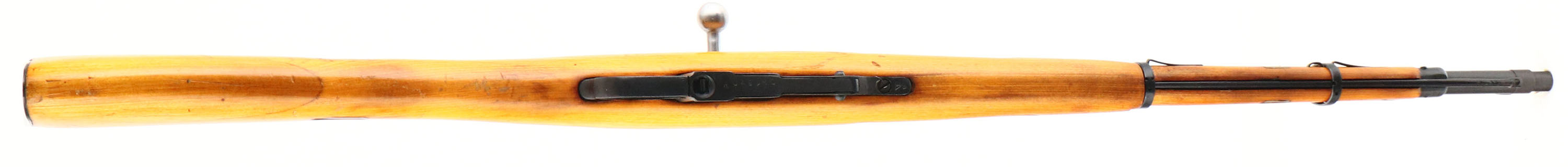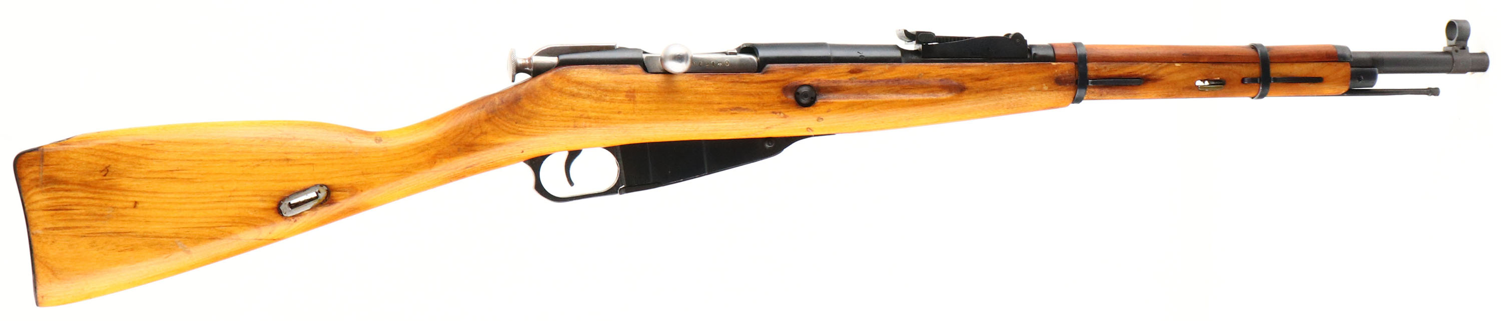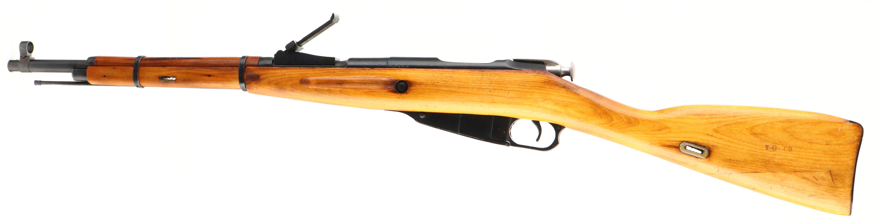 CONDITION: The straight wrist wood stock is excellent as being sanded & refinished, & having a toe replacement. This was done as Part of the Re-Arsenal process. The left cheek of the stock is marked ''1670'', the top of the comb & the right cheek of the stock is marked with multiple faded cartouches. All metal components were re-blued when it was Re-Arsenaled leaving most of the original markings faint. The blued metal finish rates 98% overall. The top of the barrel is marked with a faded Hammer & sickle in a wheat wreath stamp, a faded ''1943r'', the original Russian S/N marked in Cyrillic letters & ''1670'', ''1891/59'', a heavily faded arrow in a triangle stamp, & most of the proof marks have been either buffed off or are heavily faded. The S/N is marked on the left side of the receiver. The right end of the barrel is stamped with import markings. Rifle has a S/N matching bolt, magazine floorplate, & buttplate. The bore is Excellent, & has not been counterbored. The barrel holds a post front sight with a protective globe, & a tangent U-notch rear sight marked 1 to 10. the 11 to 20 markings on the rear sight have been milled off as part of the /59 update. The stock carries a blued steel buttplate that's marked with the S/N on the upper tang. Stock has both sling wells & comes with a cleaning rod.