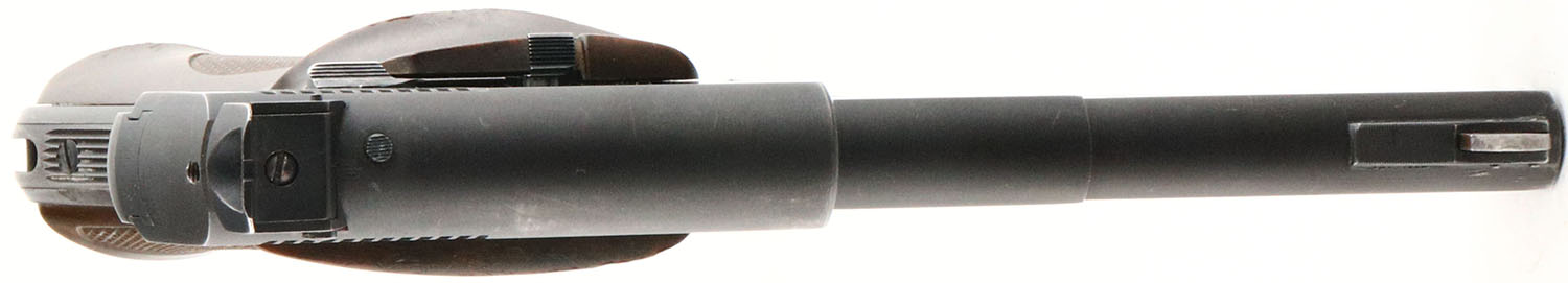 Colt, Woodsman 2nd Series Match Target, CAL: 22LR, MFG: 1952, SN: 118342-S, Semi Auto Pistol, 4 1/2'' heavy barrel. The original Colt wood checkered plastic grips are very good & solid. There are minor edge chips, scratches & scrapes. The original metal blue finish rates 90% overall, with light surface scrapes throughout & thinning around the muzzle & sharp edges. Bore is excellent. Adjustable rear sight & ramp elevated pinned blade front sight. FFL or C&R Req. - Value: 600 to 1000