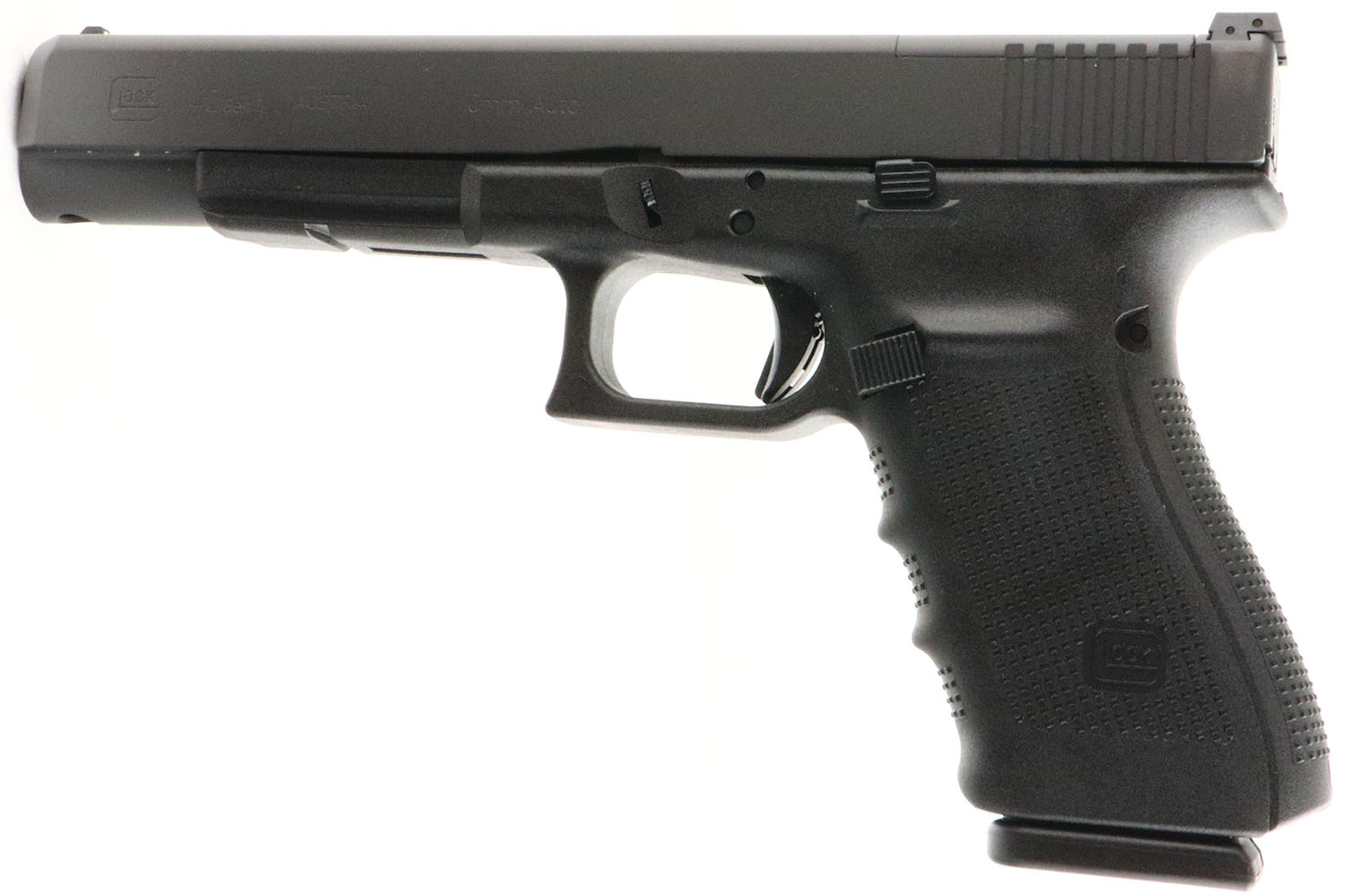 NEW CASED, Glock, Model 40 Gen 4 MOS, CAL: 10mm, MFG: Modern, SN: BZKR695, Semi Auto Pistol, 6'' barrel. The textured polymer grip & frame are mint. The factory matte black finish is mint. Bore is mint. Factory square notch white rear sight & single white dot front sight. Comes in the original factory hard case, with owners manual, lock/key, cleaning rod & brush, 2 grip attachments, MOS Adapter Set 02, (3) 15rd mags & speed loader. NOS. NIB. FFL Req. - Value: 600 to 900