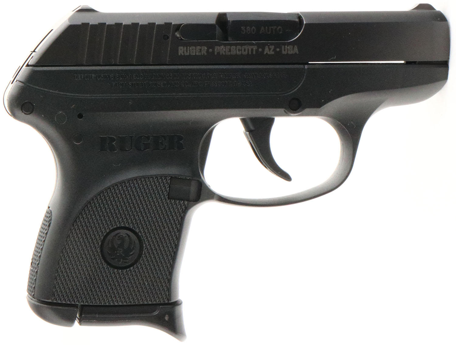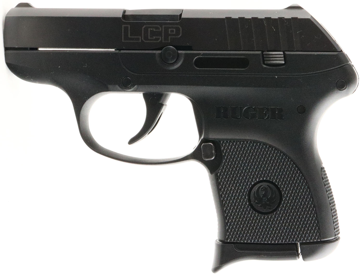 Ruger, LCP, CAL: .380, MFG: Modern, SN: 371770534, Semi Auto Pistol, 2 5/8'' barrel. The Ruger textured polymer grip frame is excellent. The blued finish on the slide rates 99%. Bore is excellent. Factory square notch rear sight & blade front sight. FFL Req. - Value: 150 to 300