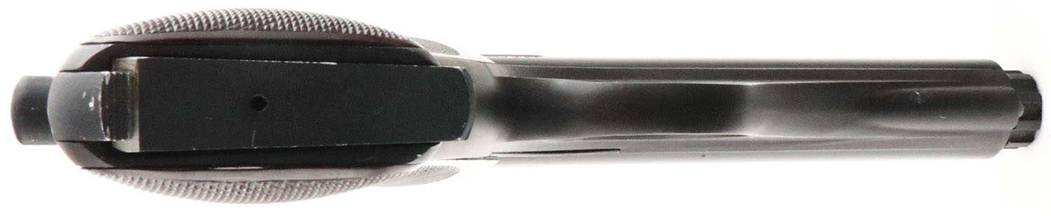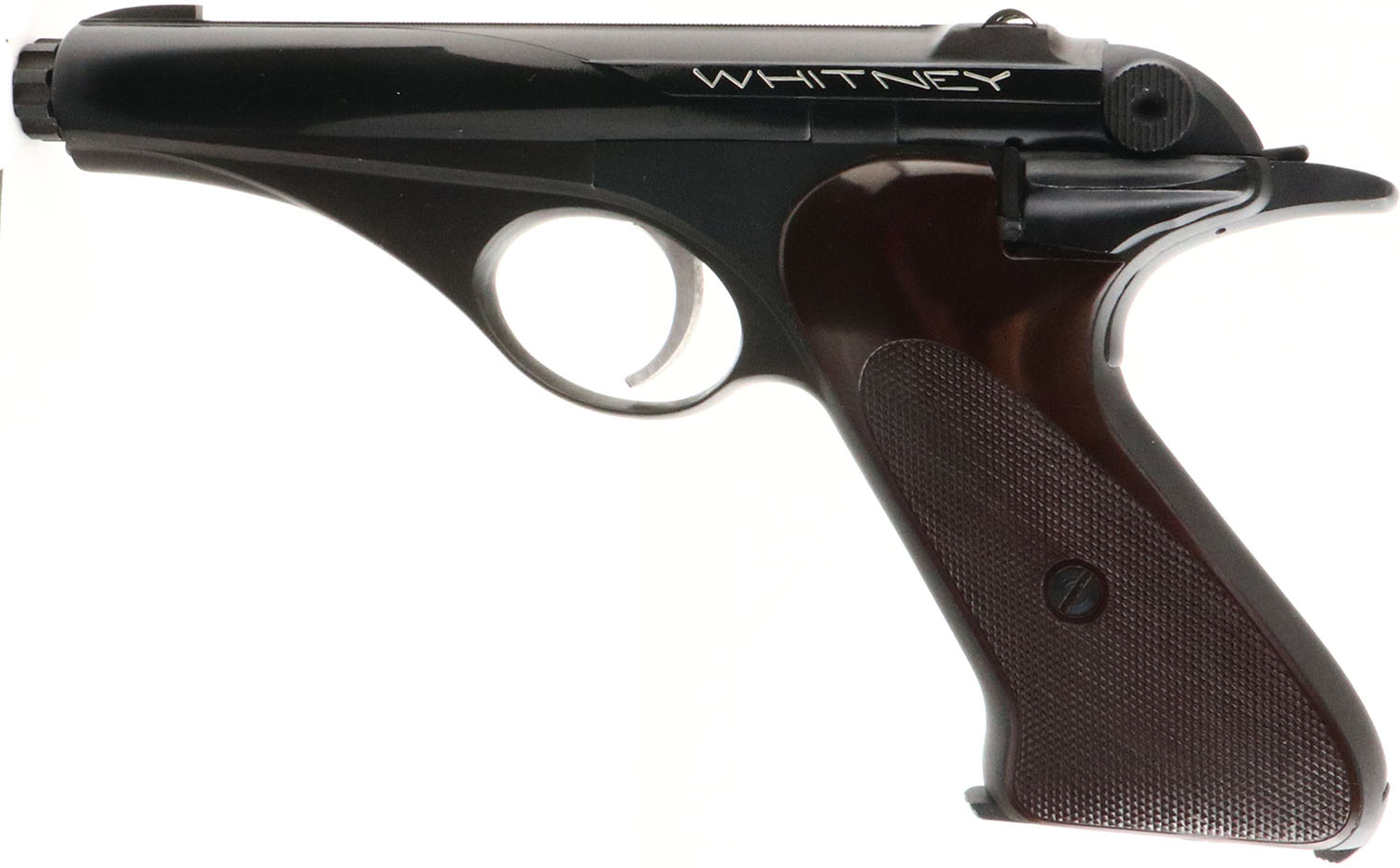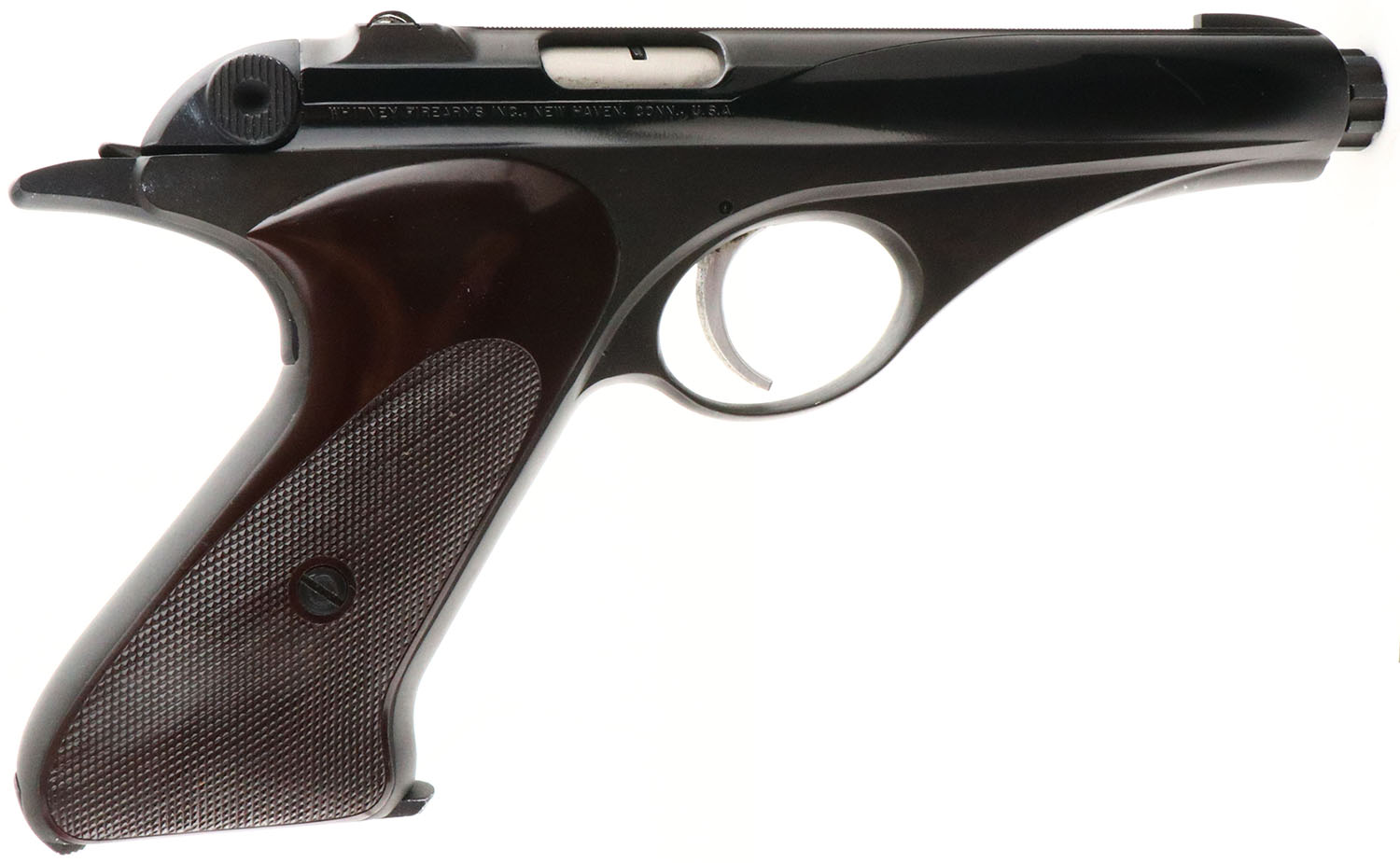 CONDITION: The left side of the barrel is marked ''WOLVERINE'' & the right side of the barrel is marked ''WHITNEY FIREARMS INC. NEW HAVEN, CONN. USA''. The full SN can be found on the front strap. The original checkered plastic grips are excellent. There are minor handling marks & light scuffs. The two-tone finish on the barrel is excellent. There are handling marks & a couple scrapes to the high gloss black finish. The parkerized style matte gray finish on the barrel & frame is excellent. Bore is excellent. Factory square notch rear sight & shallow square blade front sight. Original magazine. A scarce example of a short lived pistol. FFL or C&R Req. - Value: 1500 to 2500