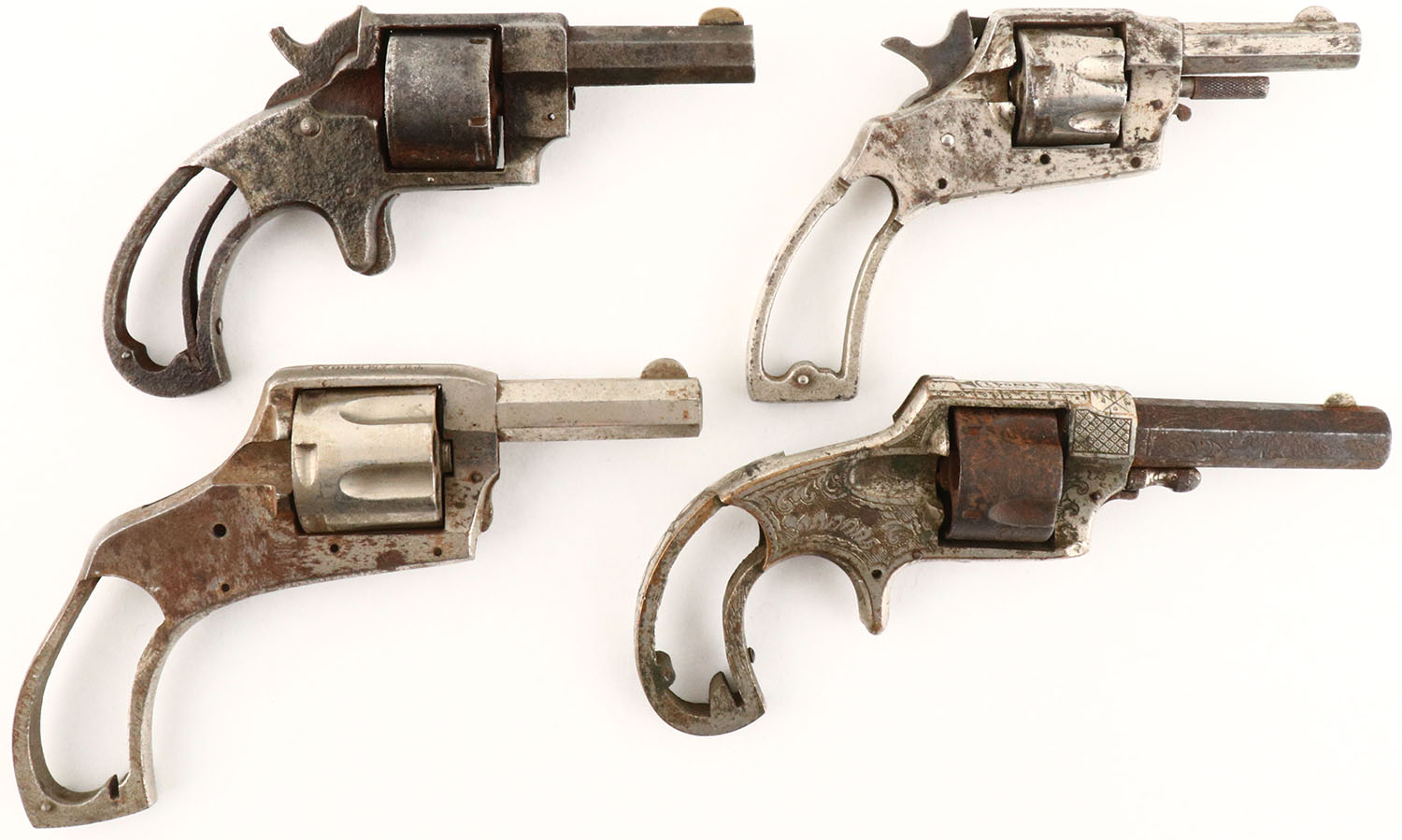 Lot of (4) antique pocket pistol parts guns, spare parts, one marked Hopkins & Allen. Sold ''AS-IS'', with no returns. Antiques - No FFL Req. - Value: 10 to 150