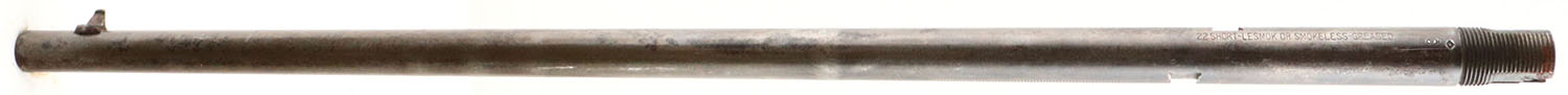 Remington, Model 24, .22 short Lesmok, 19 1/2'' barrel, the bore is fair, its bright but has spots of pitting, dark rings, & has bulge 8 1/2'' up the barrel. Has front sight. Grade: Good + - Value: 10 to 40