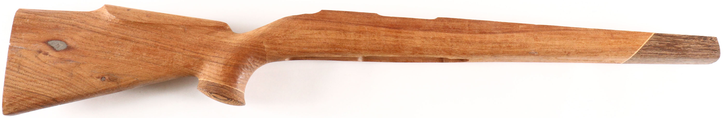 Unfinished wood rifle stock, capped pistol grip & forend, cheeked, no buttplate. Grade: Excellent ++ - Value: 10 to 100