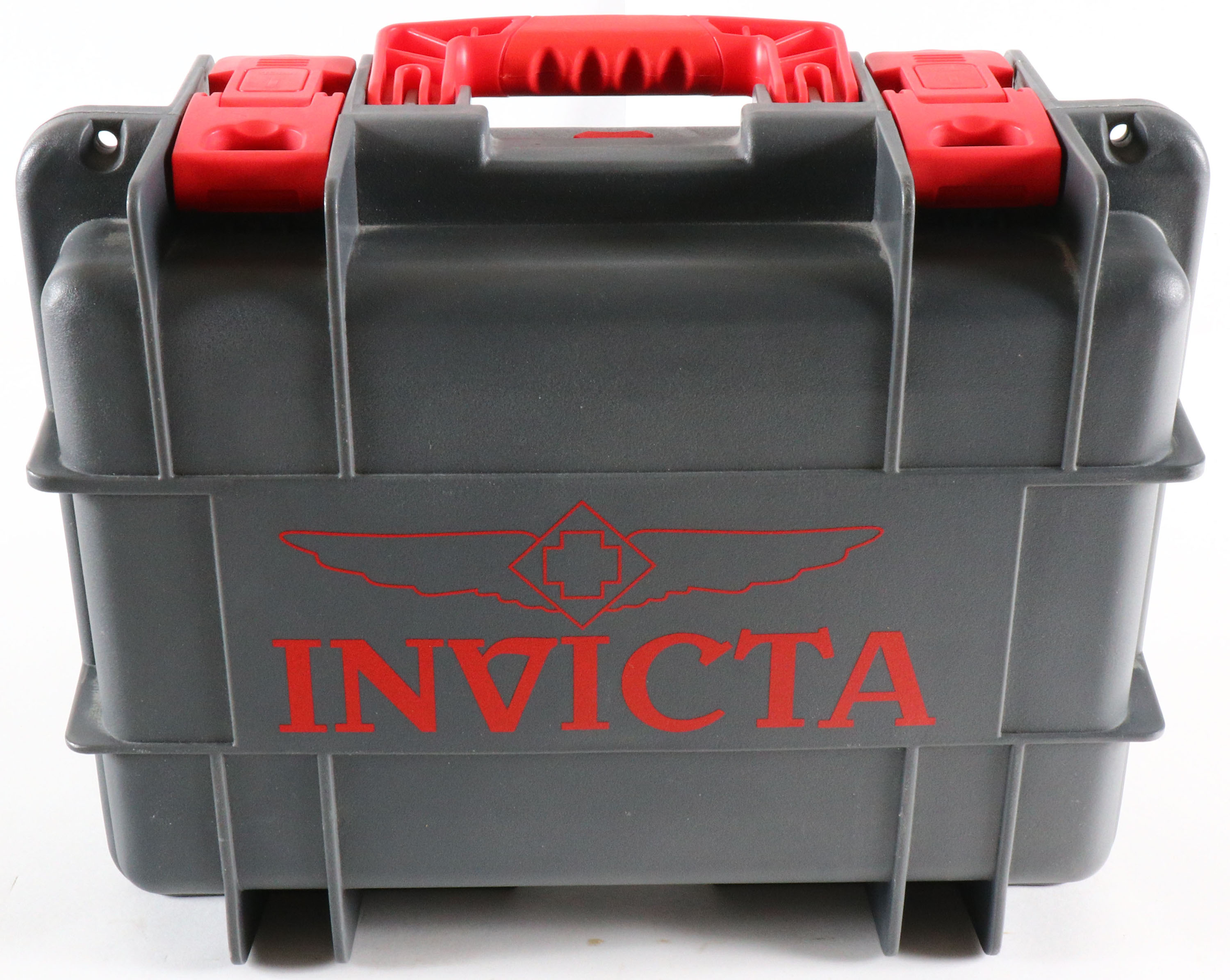 Invicta, waterproof hard case, has provisions for (2) pad locks, inside is minty. Grade: MINT - Value: 10 to 50