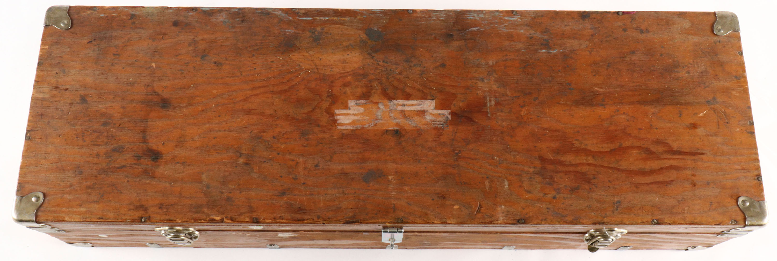 Latching wooden chest, has provisions for a center padlock, OD: 35'' x 11'' x 7''. Grade: Very Good - Value: 4 to 40