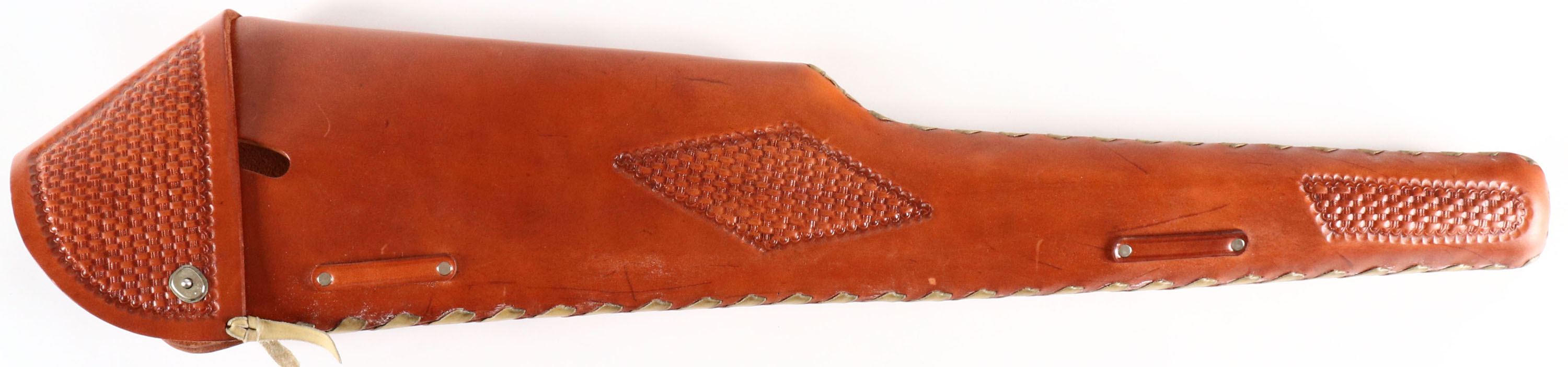 Leather long gun scabbard, buttoning butt cover, 37'' x 9''. Grade: Very Good - Value: 16 to 80