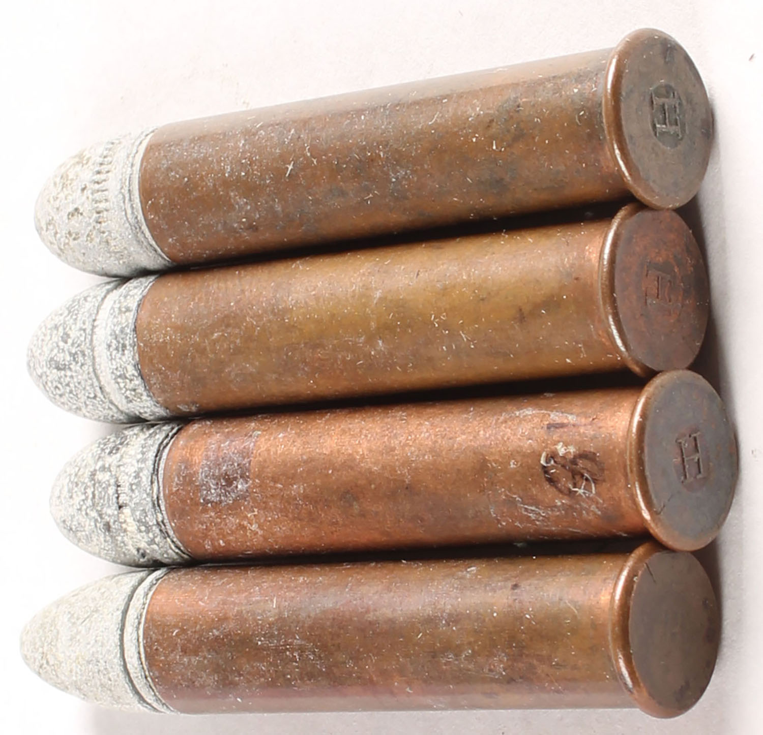 Lot of 4. .38 Extra Long Rimfire. HS:''H'' raised. RN Lead. Grade: Excellent - Value: 40 to 80