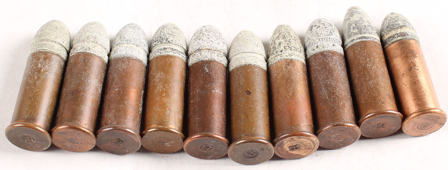 Lot of 10. 38 Long Rimfire. HS:''H raised''. RN Lead. Grade: Very Good ++ - Value: 40 to 80