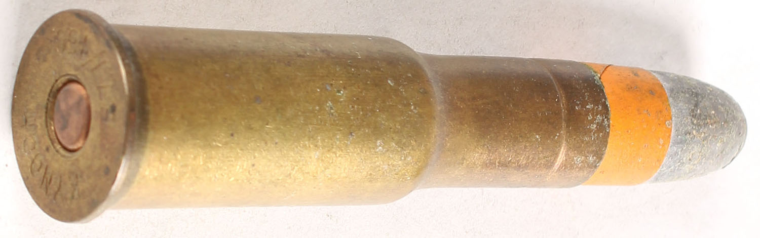 577/450 Martini Henry. HS:''KYNOCH 577/450'', RN PP Lead. Orange paper patch indicates for machine gun use. - Value: 20 to 40