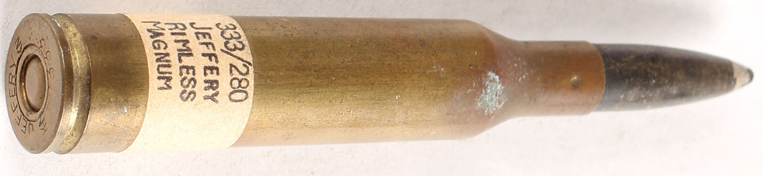 .280 Jeffery Rimless Magnum. HS:''JEFFERY KN .333 KN'', PT blackened solder tip. Early loading using .333 Nitro cases. - Value: 2 to 40
