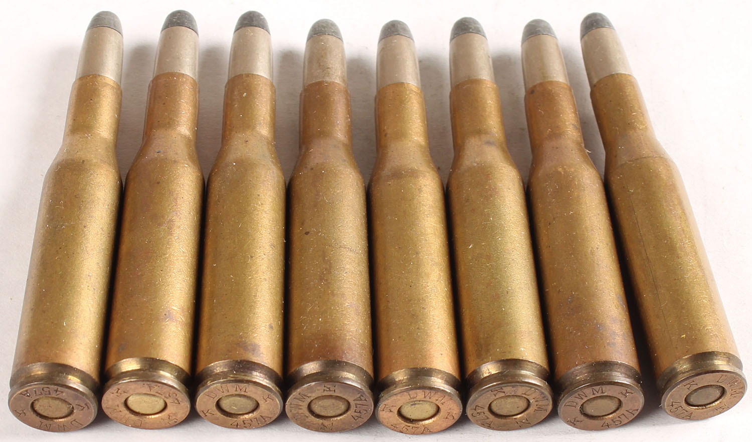 Lot of 8. 6.5x57 Mauser. HS:''DWM K 457A K''. RN CN SP. - Value: 40 to 80