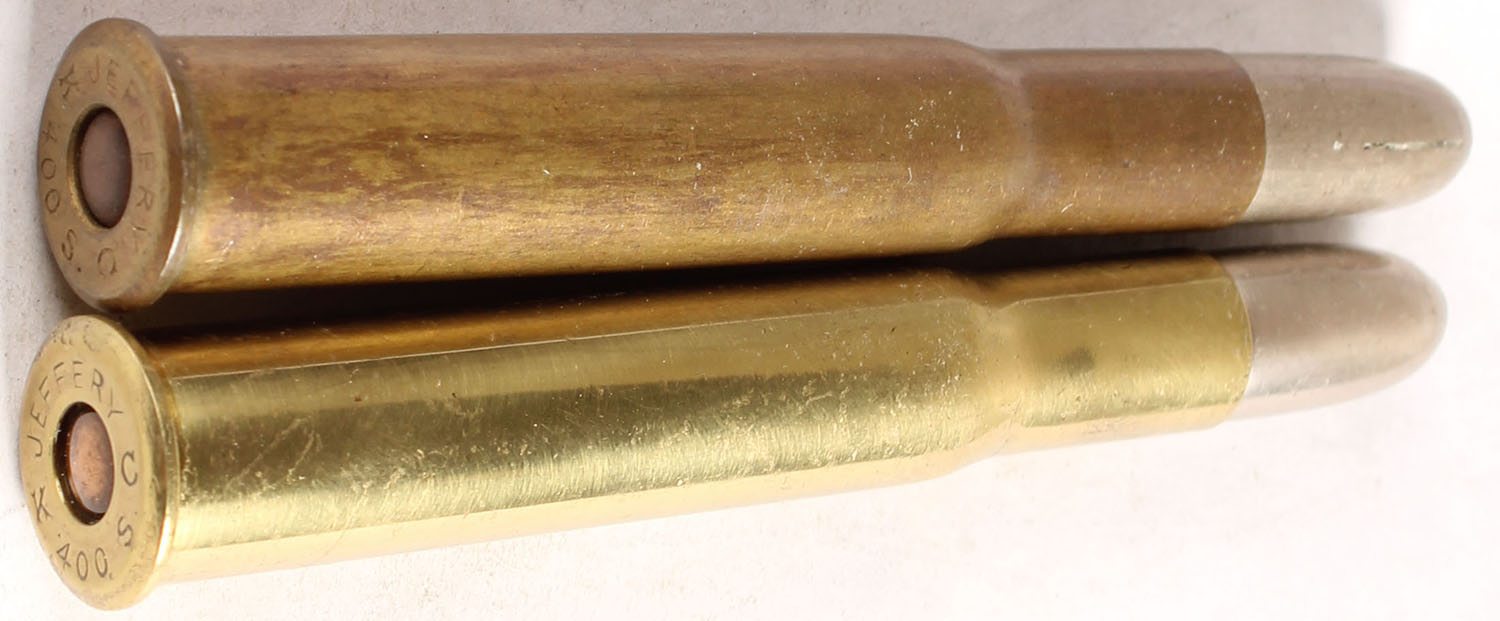 Lot of 2. 400x3'' Jeffery Nitro. HS:''JEFFERY C 400 S K'', (1)RN CN FMJ, (1) FN CN SP w/ slits. - Value: 20 to 40