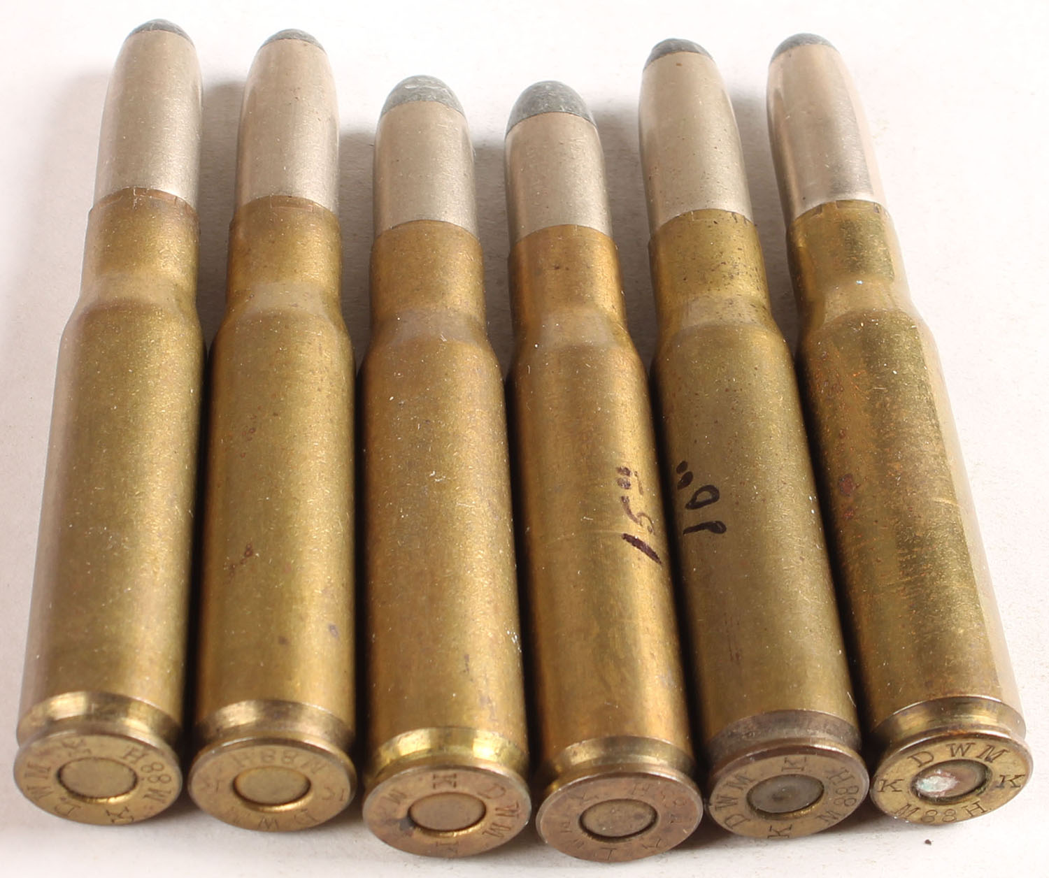 | Lot of 6. 8x51 Mauser. HS:''DWM K M88H K'', RN CN SP. ...