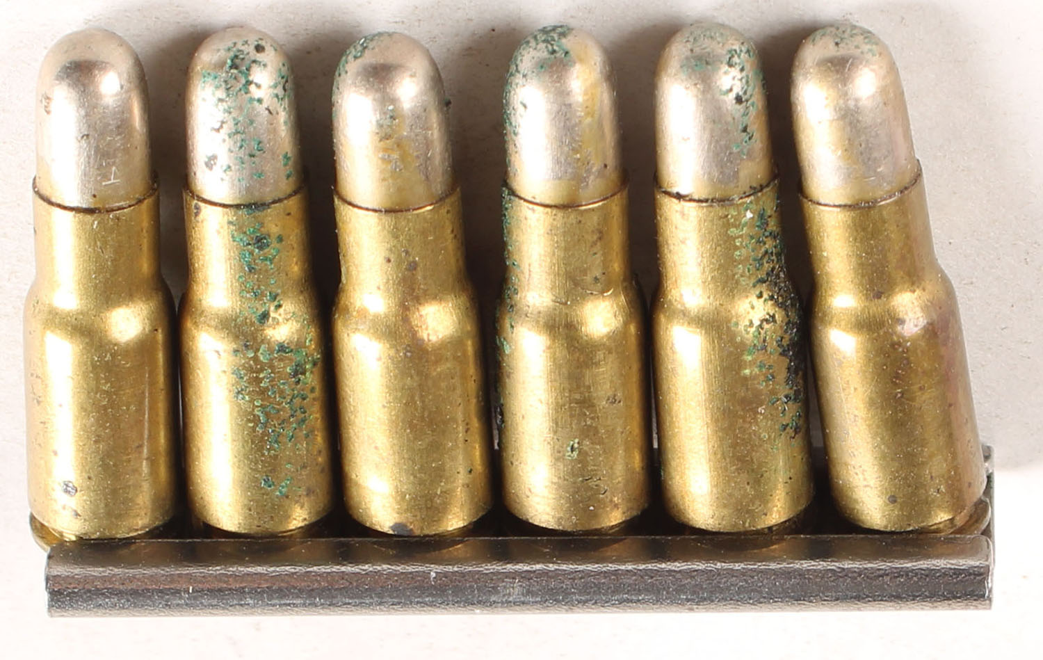 Lot of 6 (with charger). 5mm Clement Auto Pistol. HS:''H * K&C *''. RN CN FMJ. - Value: 40 to 80