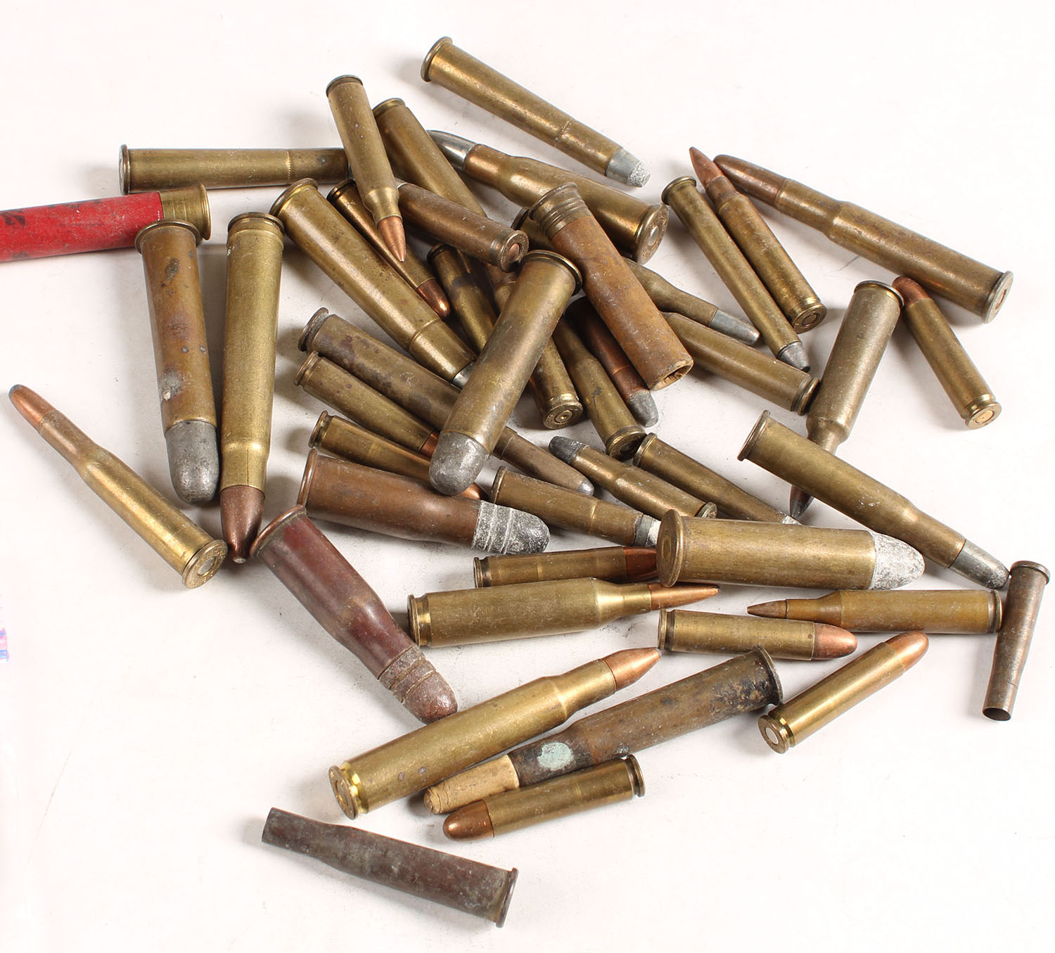 Lot of 41.. Misc. lot of rifle caliber ammunition. Numerous calibers and loadings (inc one shot shell). See Photo. Grade: Very Good + - Value: 20 to 40