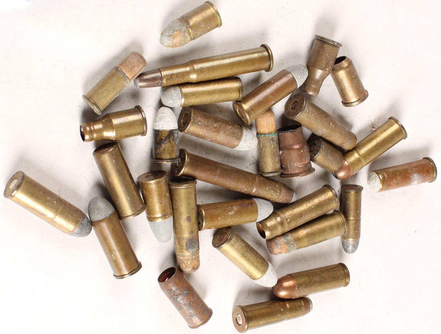 Lot of 30. A collection of various calibers, mostly revolver. Includes, .45 ball and blank, and a .44 M&H Revolver (headstamped). See Photo. Grade: Very Good + - Value: 30 to 50