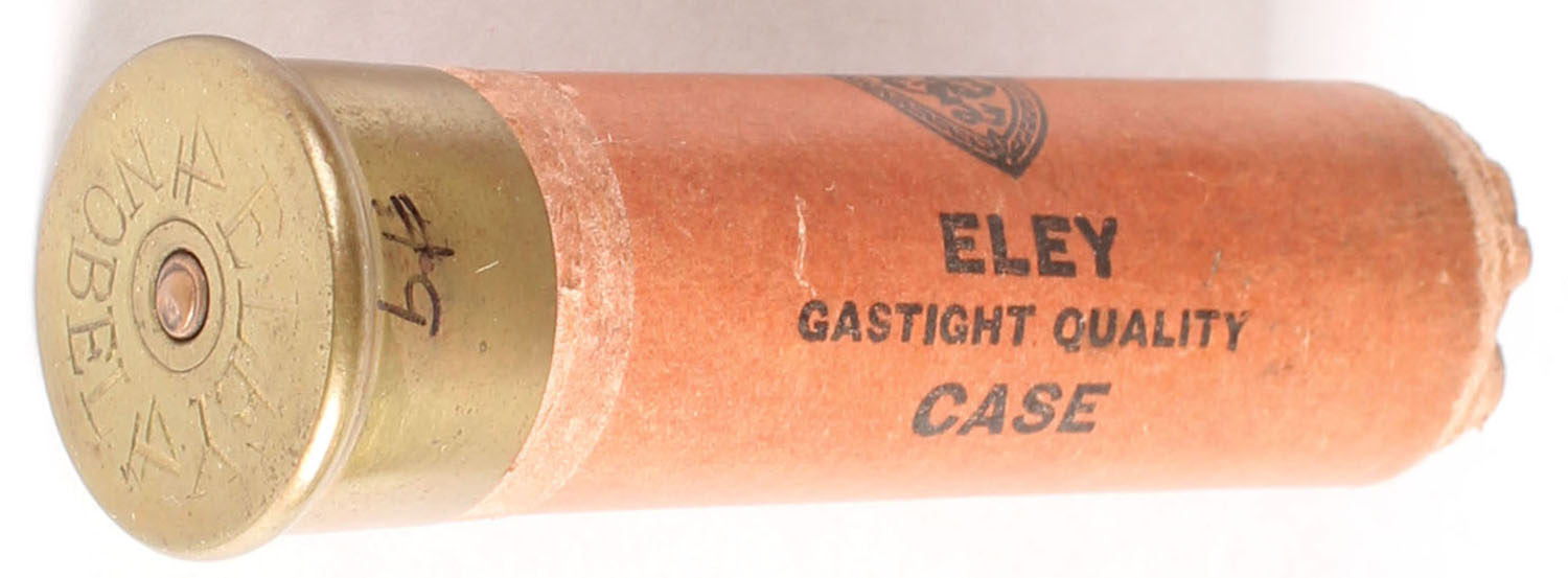 | ELEY NOBEL, 4 ga, 3 3/4'' OAL. Fired empty, red paper case. G...
