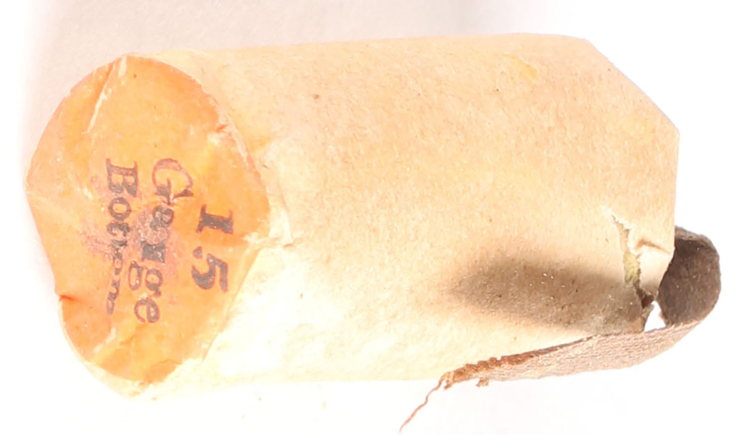 Early Eley's wire and concentrator shot loads. The Eley Brothers began designing shot in the 1820s in London and the company is still in business today and located in Birmingham. Civil Wire Paper wrapped Eley 15 gauge wire shot shell. Base of the cartridge is marked: 15 Gauge Bottom on an orange tag. Grade: Excellent + - Value: 10 to 50