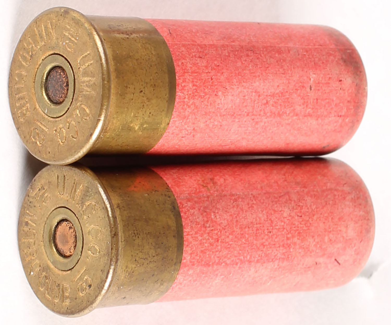 Lot of 2 H/S= ''UMC Nitro Club 18ga, 1 3/4'' OAL, red paper case, TW 7 1/2 C. Grade: Excellent + - Value: 10 to 50
