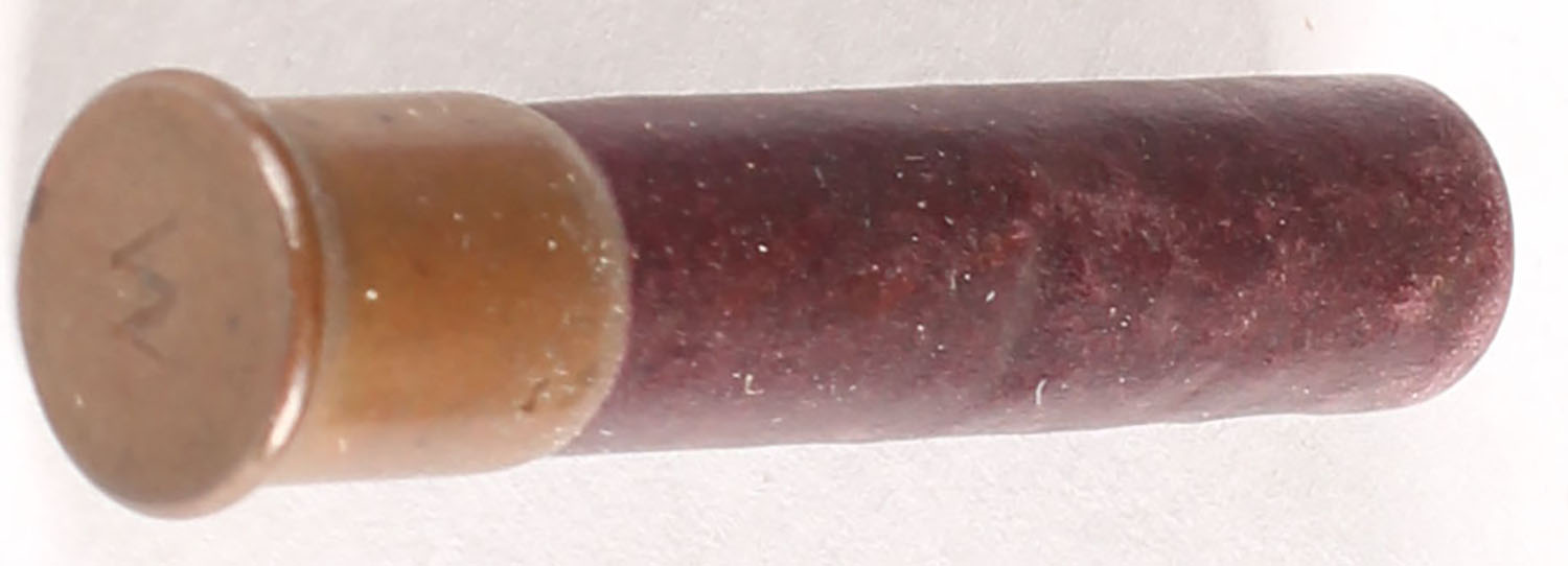 9mm Shot shell by Winchester, dark red case, loaded, 1 1/2'' OAL. Grade: Excellent - Value: 10 to 40