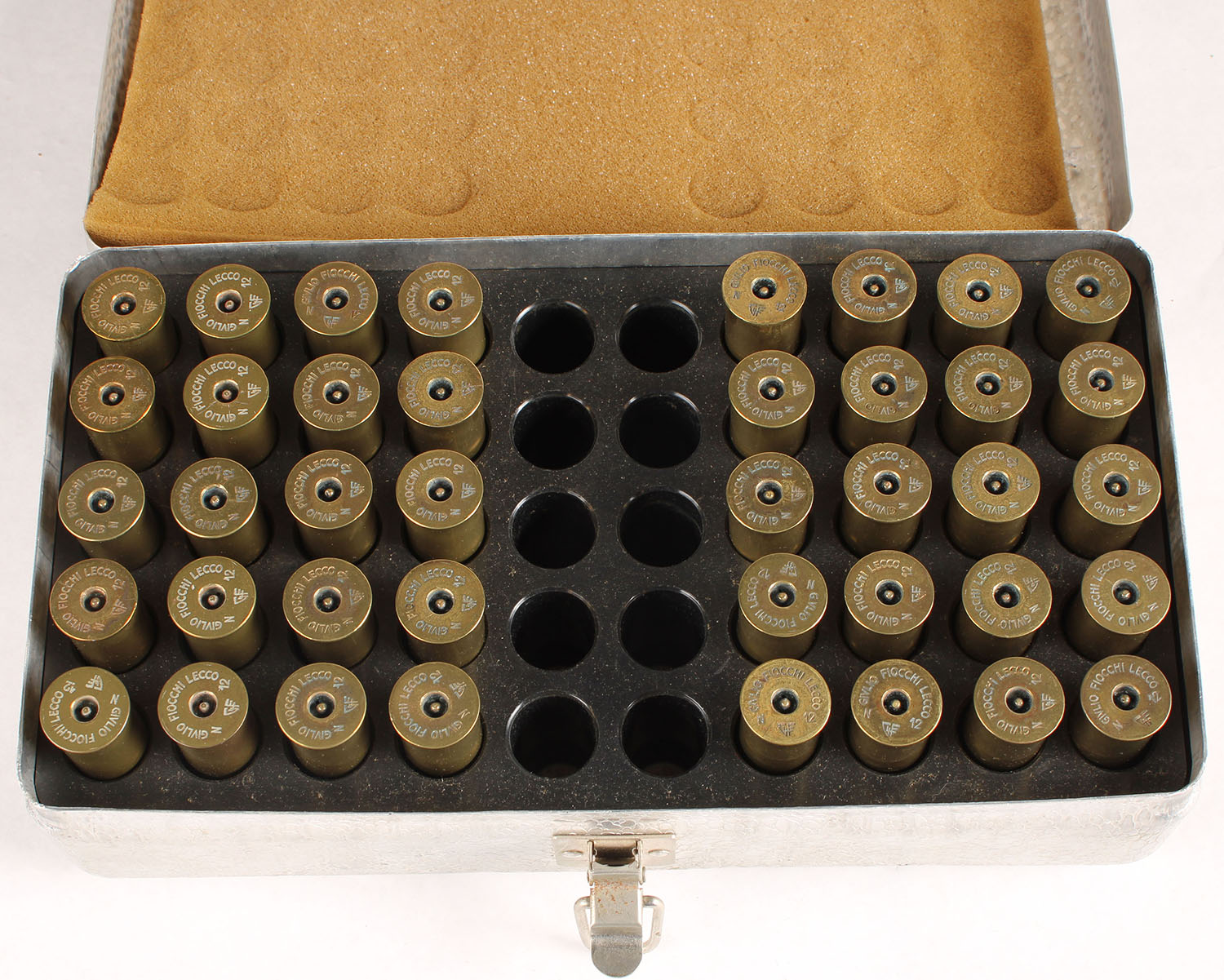 | Lot of 40 Fiocchi No 12 brass shot shells, empty. Grade: Excell...