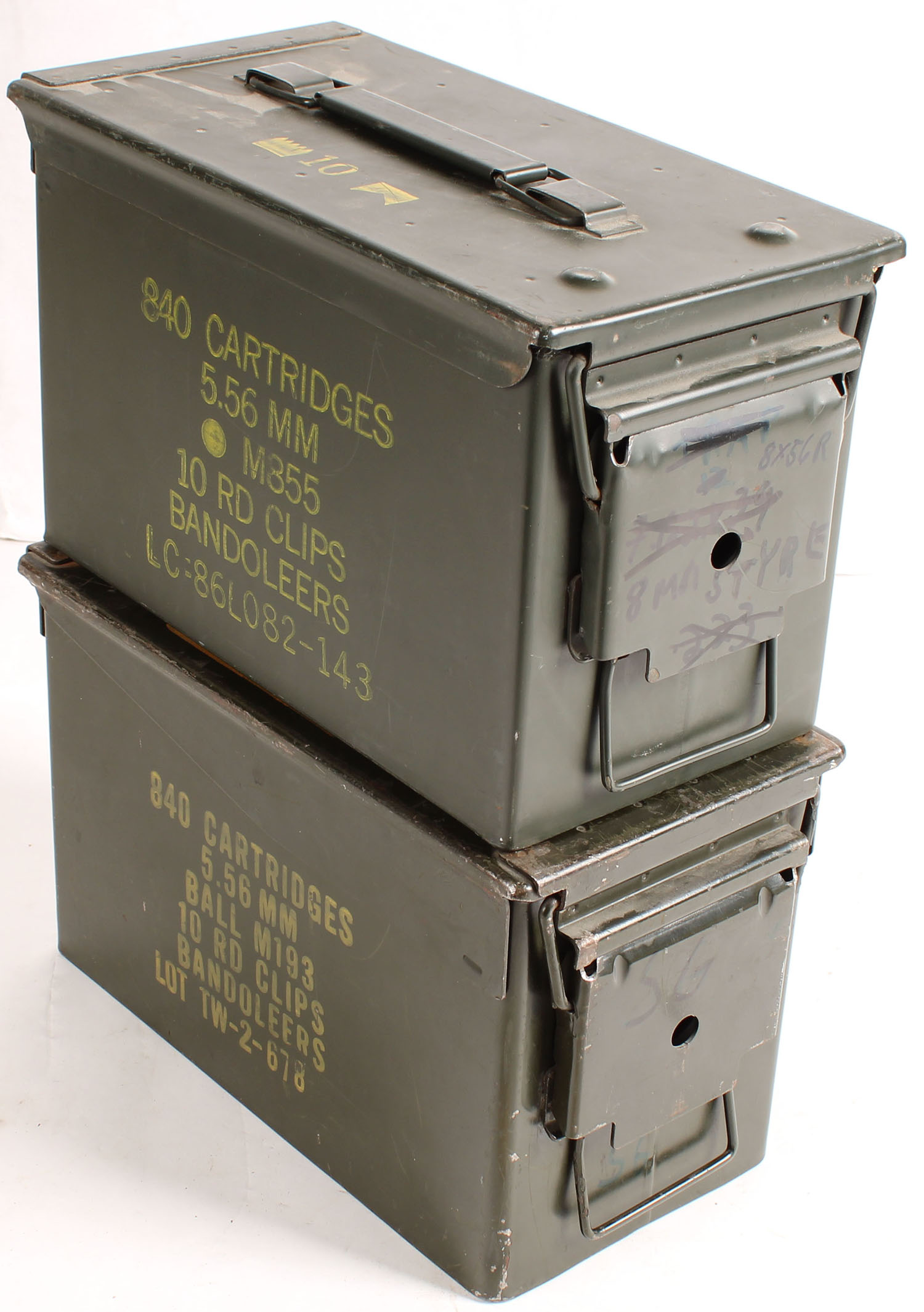 | Lot of two M2A1 .50 cal metal ammo cans, insides of both cans ha...