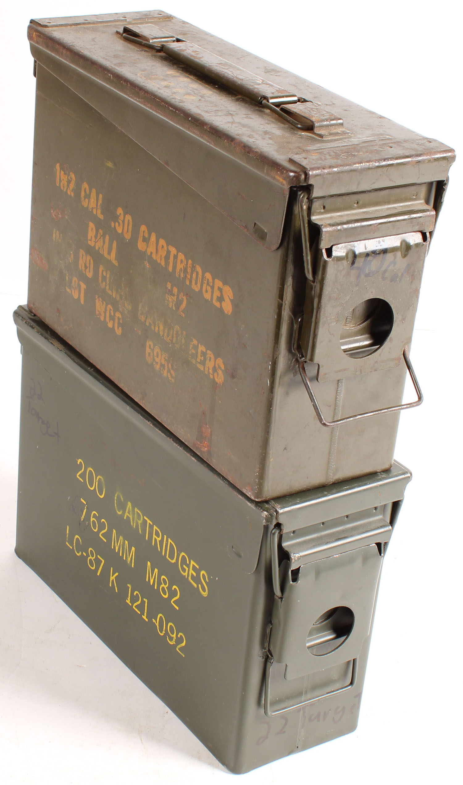 | Lot of two, M19A1 .30 Cal metal ammo cans, both empty, insides o...