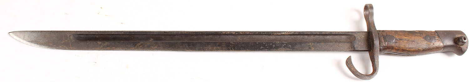 Japan, Nagoya Arsenal, Type 30 bayonet with quillon. Blade has light rust & spots of thinned finish. The right side of the blade is marked with the Nagoya Arsenal logo. Grade: Very Good - Value: 50 to 100