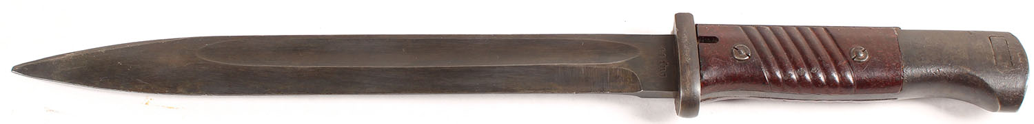 German, Alexander Coppel & Co. KG, Solingen, M1884/98 third pattern (K98k) bayonet. The blade has thinned finish in spots. The left side of the blade is marked ''44 fnj'', & the right side is marked ''8625'', ''j''. Grade: Excellent - Value: 80 to 160
