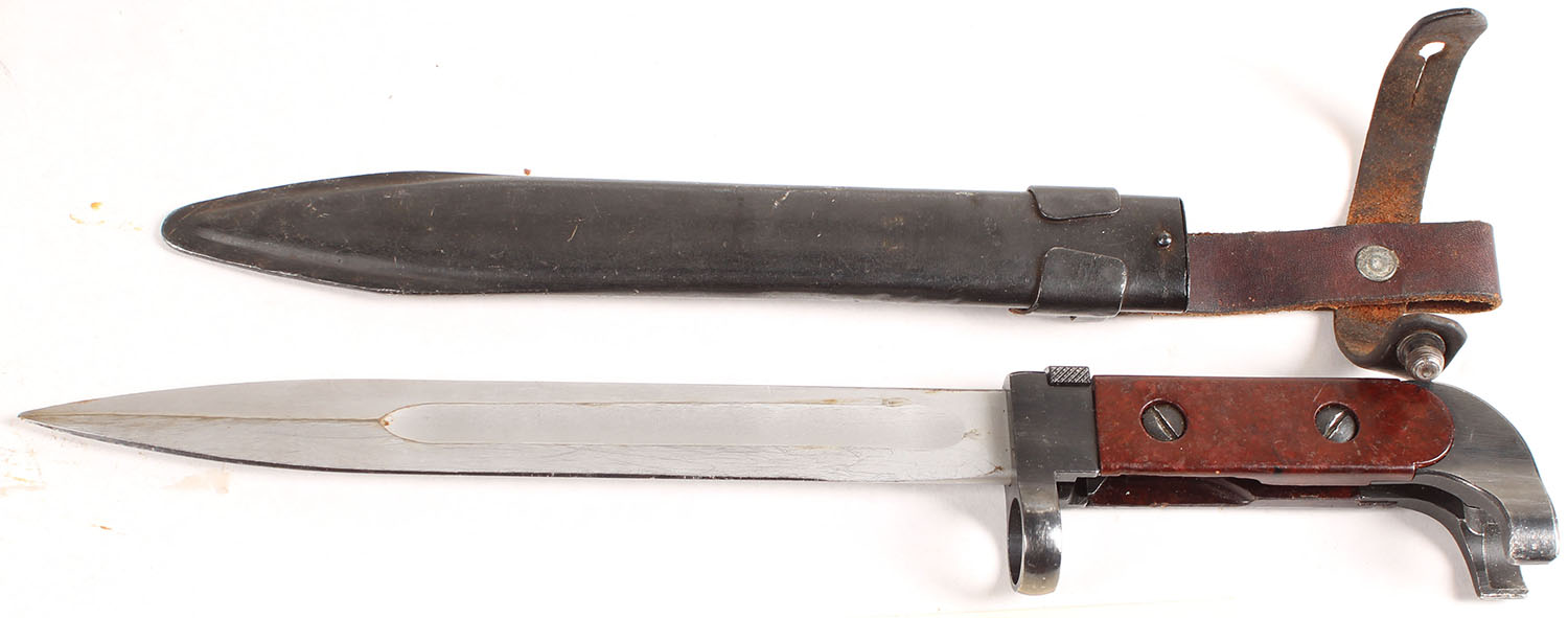Model 1951 (AK-47) bayonet with sheath/frog. The left side of the pommel is marked ''A'', ''311''. Grade: Excellent - Value: 40 to 80