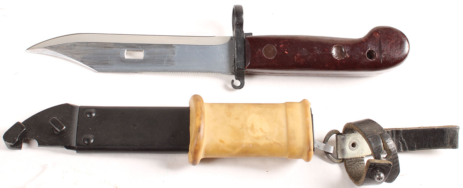| AKM type 1 (M1959) bayonet, with sheath & frog. No markings on ...