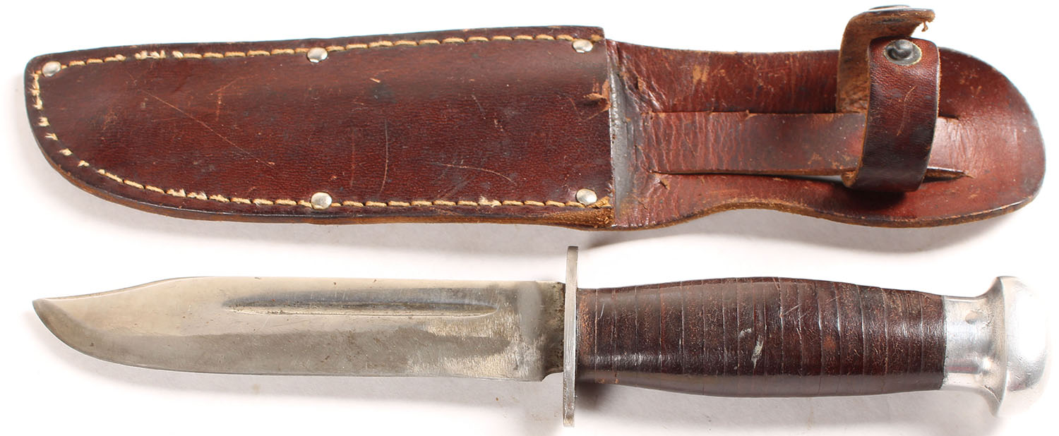 | WW2 personal bought fighting knife with leather sheath, KA-BAR M...