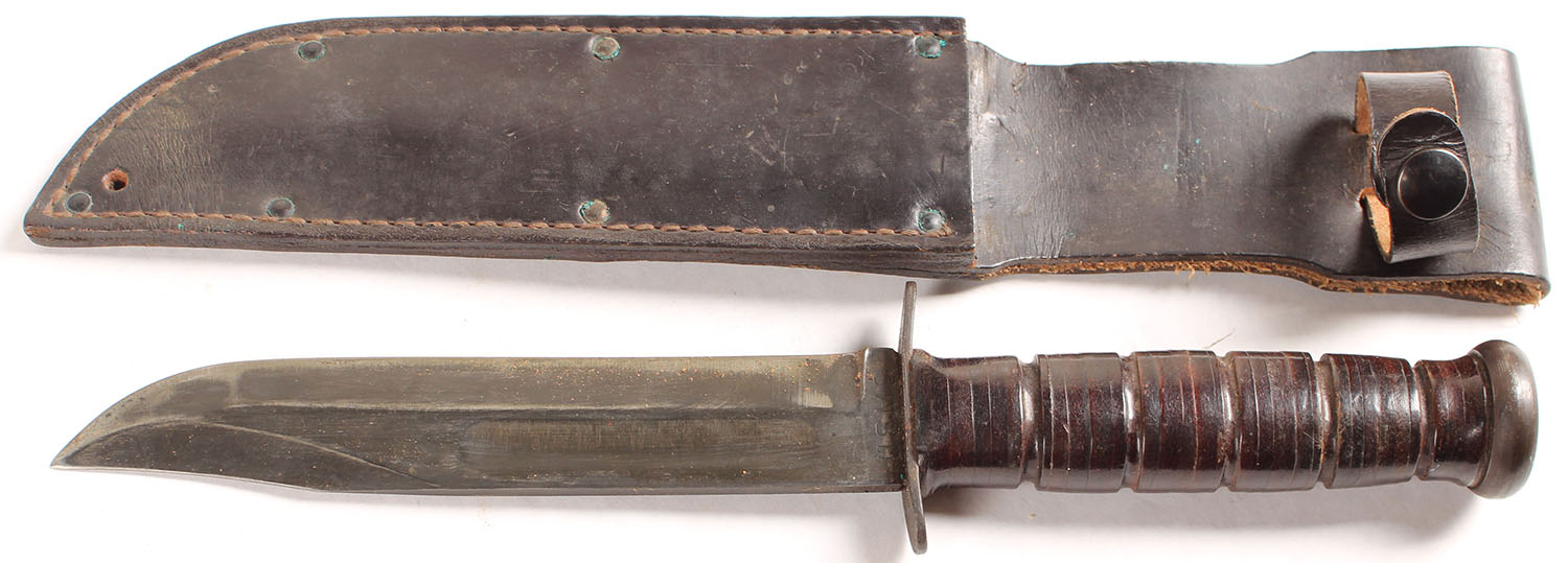 | USMC, MK2 knife with leather sheath, KA-BAR, left side of blade ...