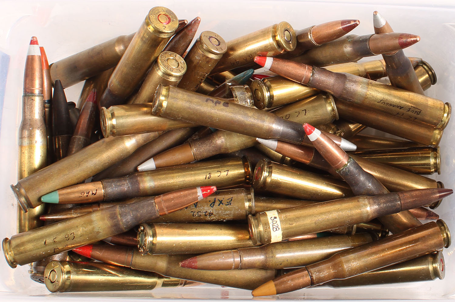 | Large Lot of live .50 BMG painted tip Rds., mixed MFG. Grade: Ve...