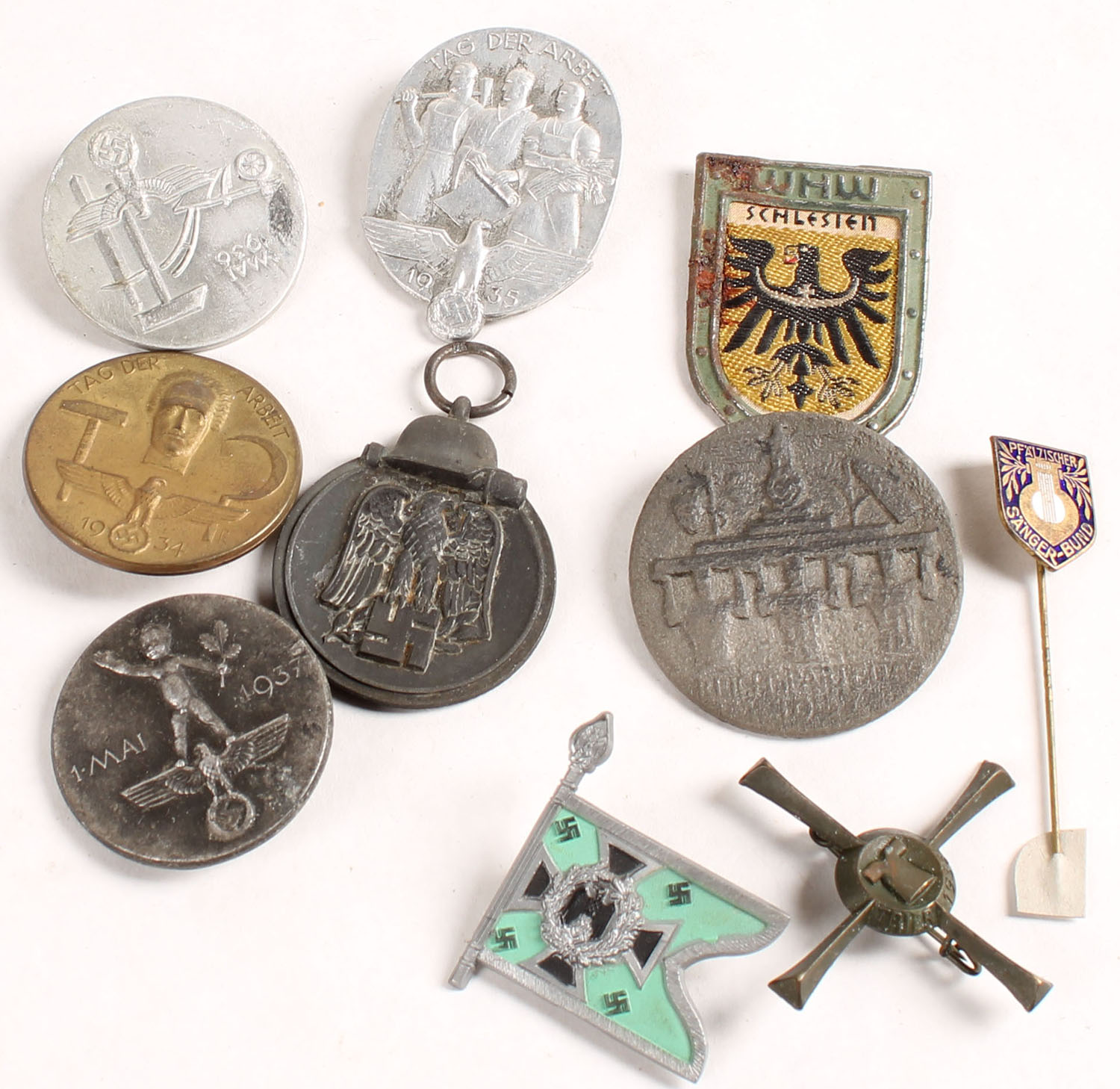 | Lot of 10 German/Nazi medals, pendants, Pinbacks. Grade: Excelle...
