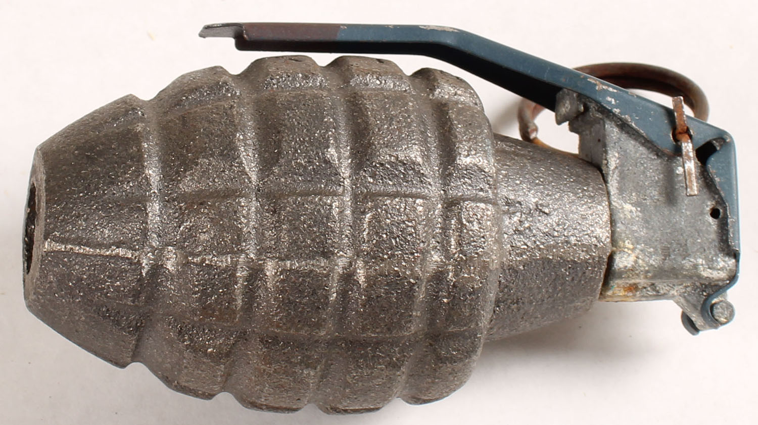 | US, Mk2 Pineapple grenade Dummy, has blue spoon, rust & corrosi...
