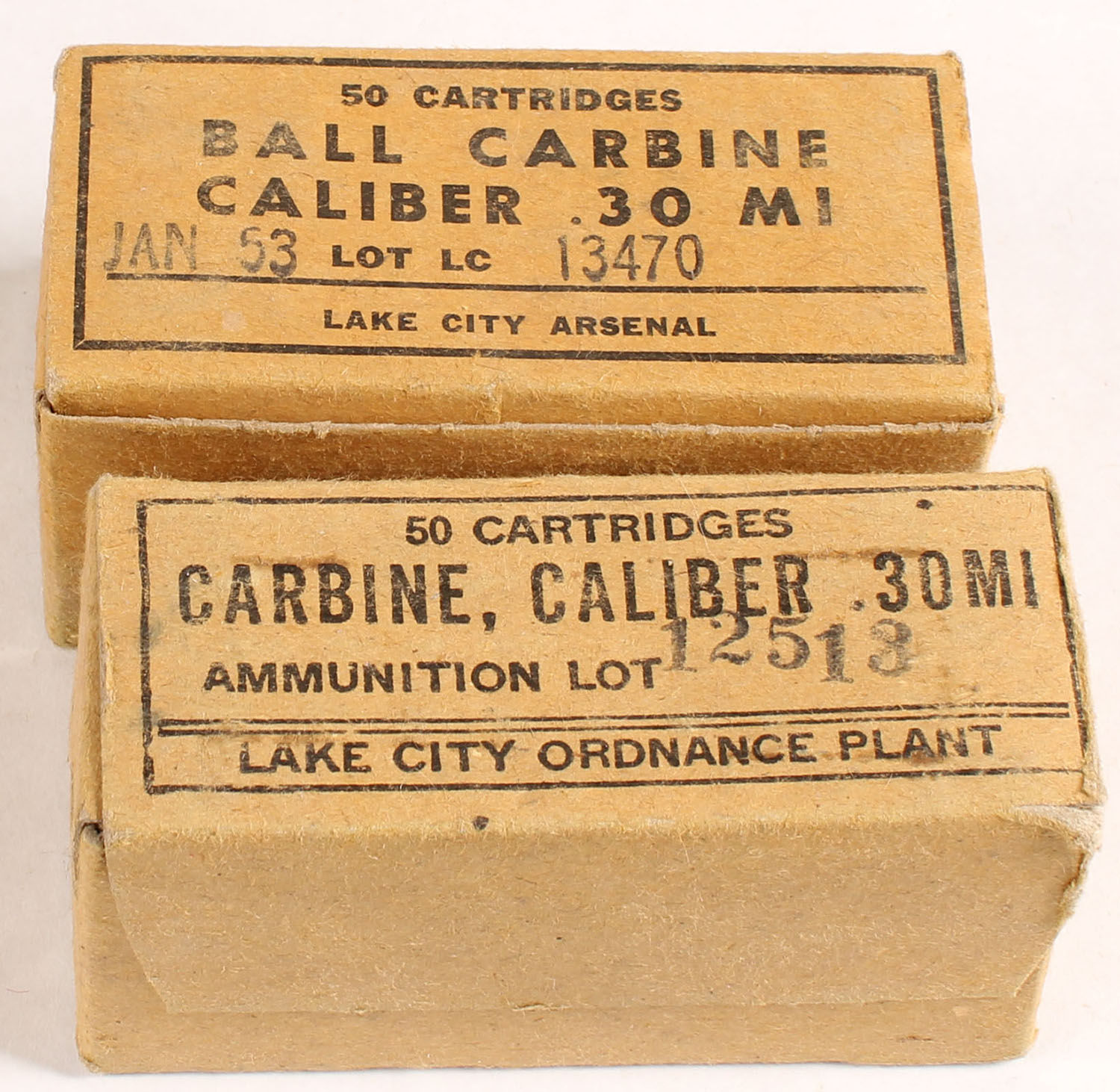 | Lot of two, Lake City, .30 carbine M1 Ball, 1pc, both Full, one ...