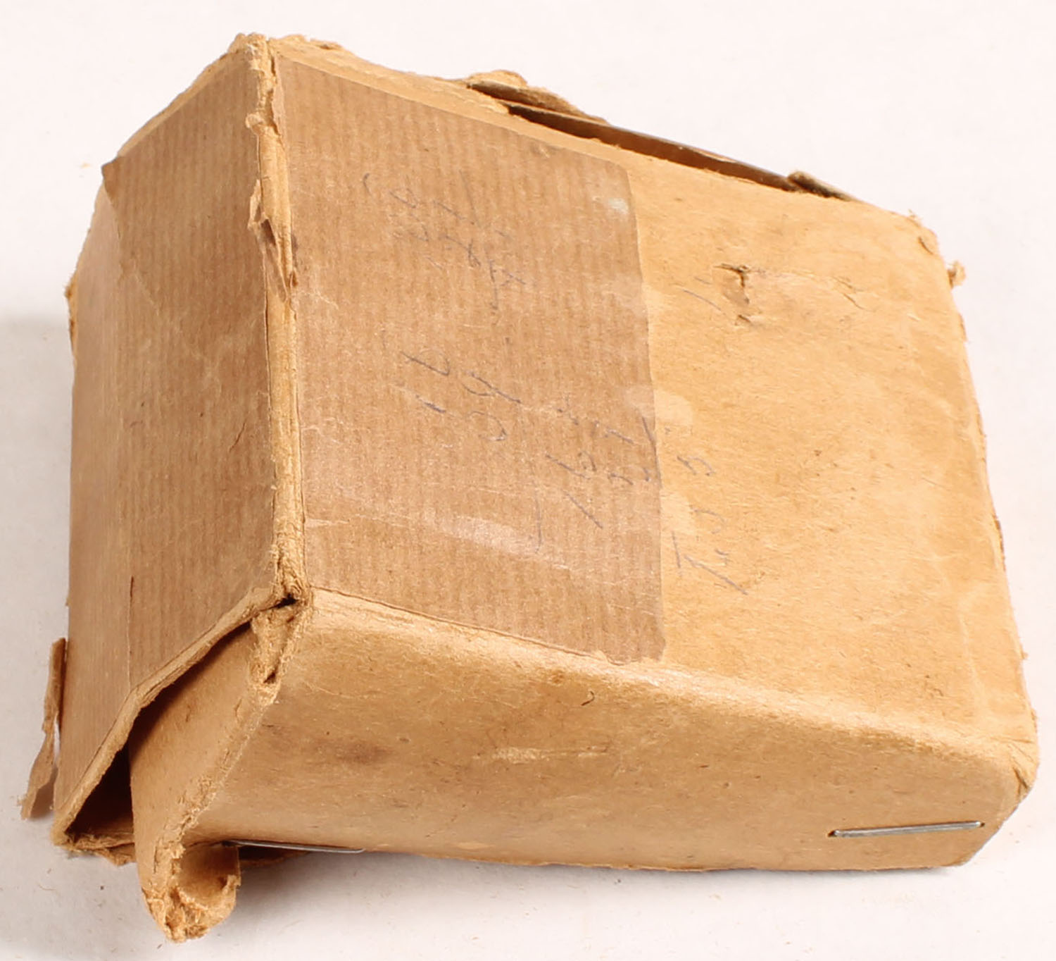 Finnish, VPT, 7.62x54mmR, 1pc, partial 9rds. Brown box, no label, box has many tears, ammo is very good. Grade: Good - Value: 8 to 160
