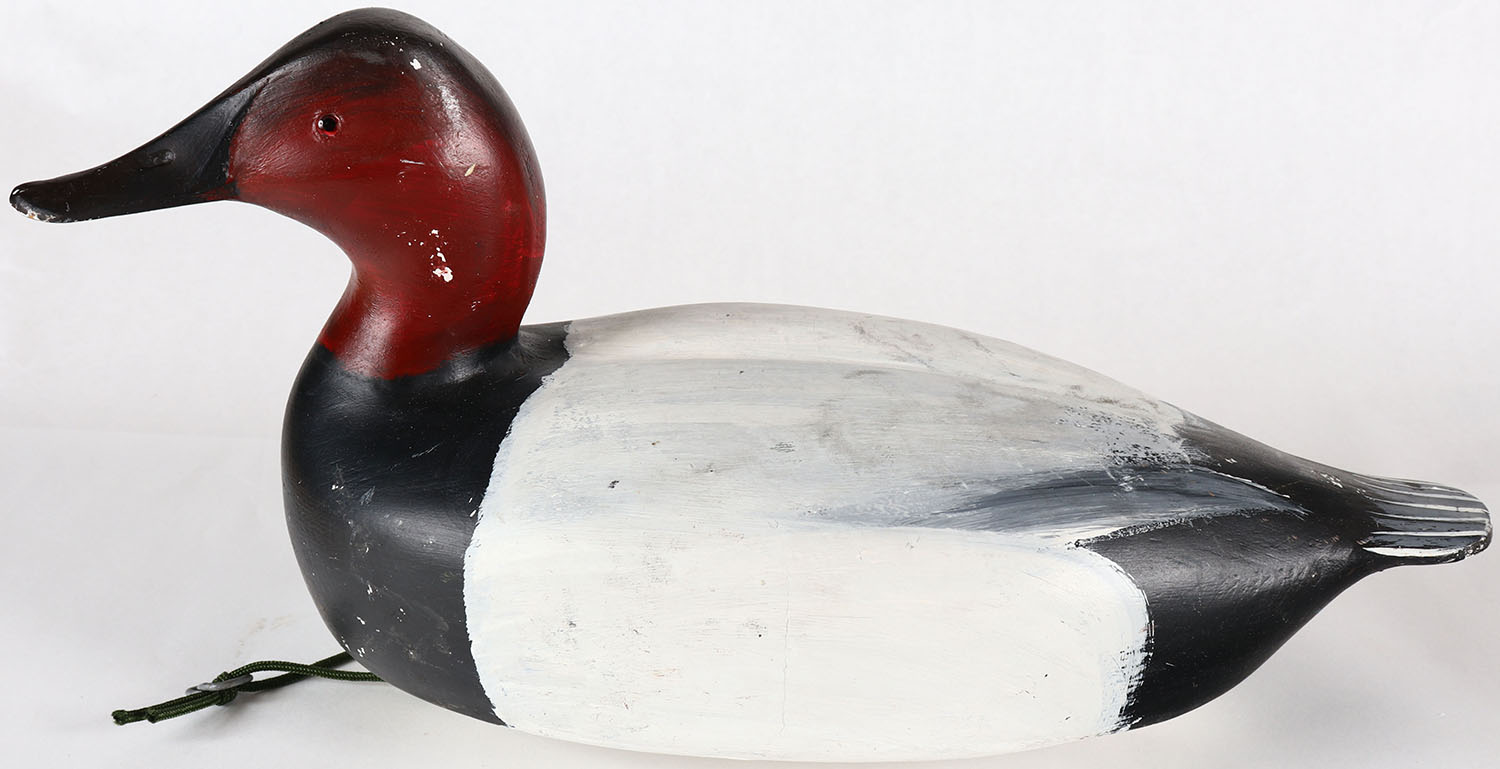 Canvasback Drake by Bill William Goenne, King City, CA, glass eyes, hollow wood, original paint, structurally excellent, 19'' OAL. Grade: Excellent - Value: 100 to 200