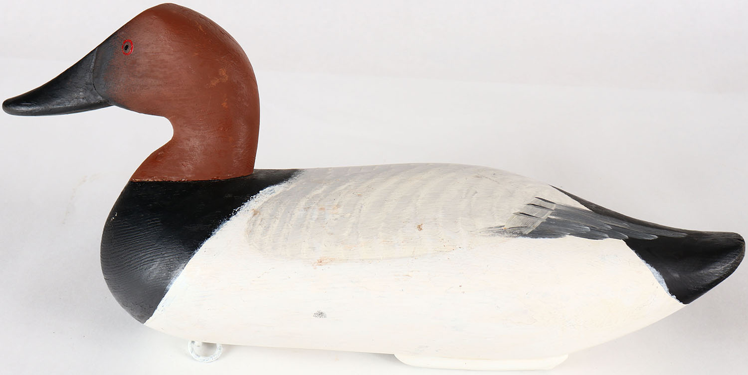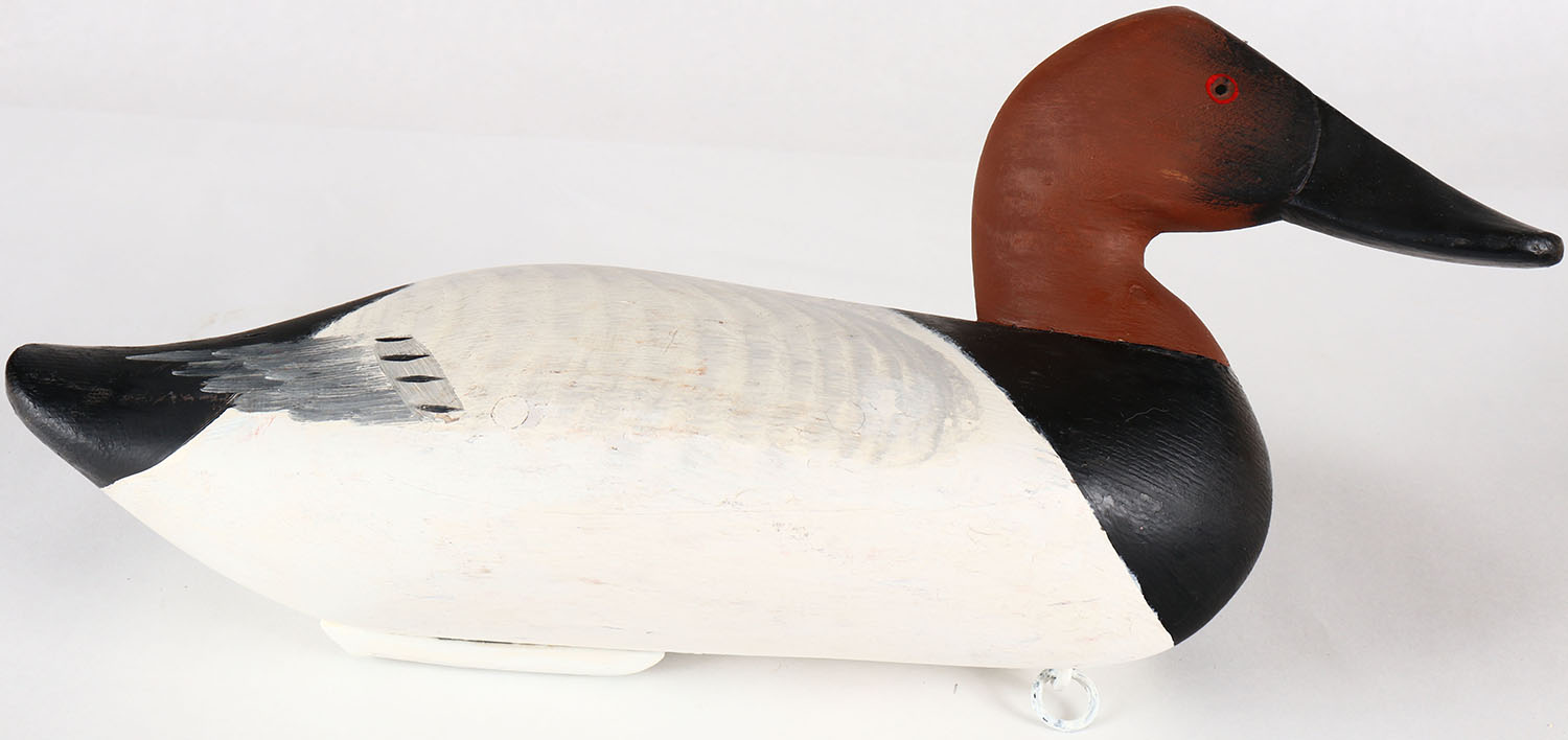 Canvasback Drake by unknown MD carver, painted eyes, solid wood, original paint, 17'' OAL. Grade: Excellent - Value: 70 to 150